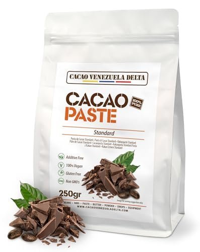 Cacao Venezuela Delta Pasta De Cacao Pura Ceremonial 250g – Chocolate Negro 100% Puro sin Azúcar para Fundir y Reposteria – Masa De Cacao Sin Gluten, Antioxidante, Vegano