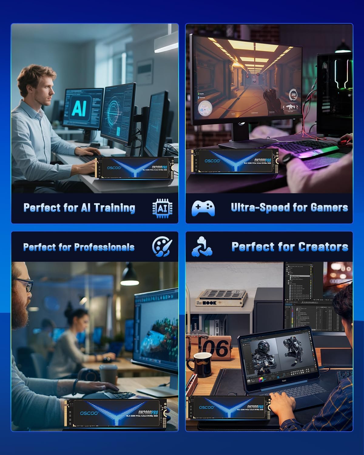 The next generation of Gen5 performance: Blast past limits with random read/write speed up to 8000K/7500K IOPS—enjoy ultra fast game loads, seamless AI workflows, and smooth multitasking. Best choice for gamers, creators and professionals. The PCIe 5.0 NVMe M.2 2280 SSD delivers super-fast response for everything from intense gaming to heavy-duty content creation.