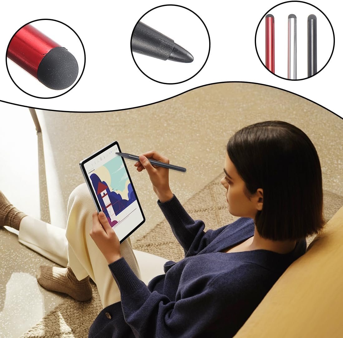 2 in 1 Practical Design: This tablet pen features two different tips: a precise disc tip ideal for note taking and drawing, and a soft silicone tip perfect for navigating and scrolling, protecting the screen from fingerprints