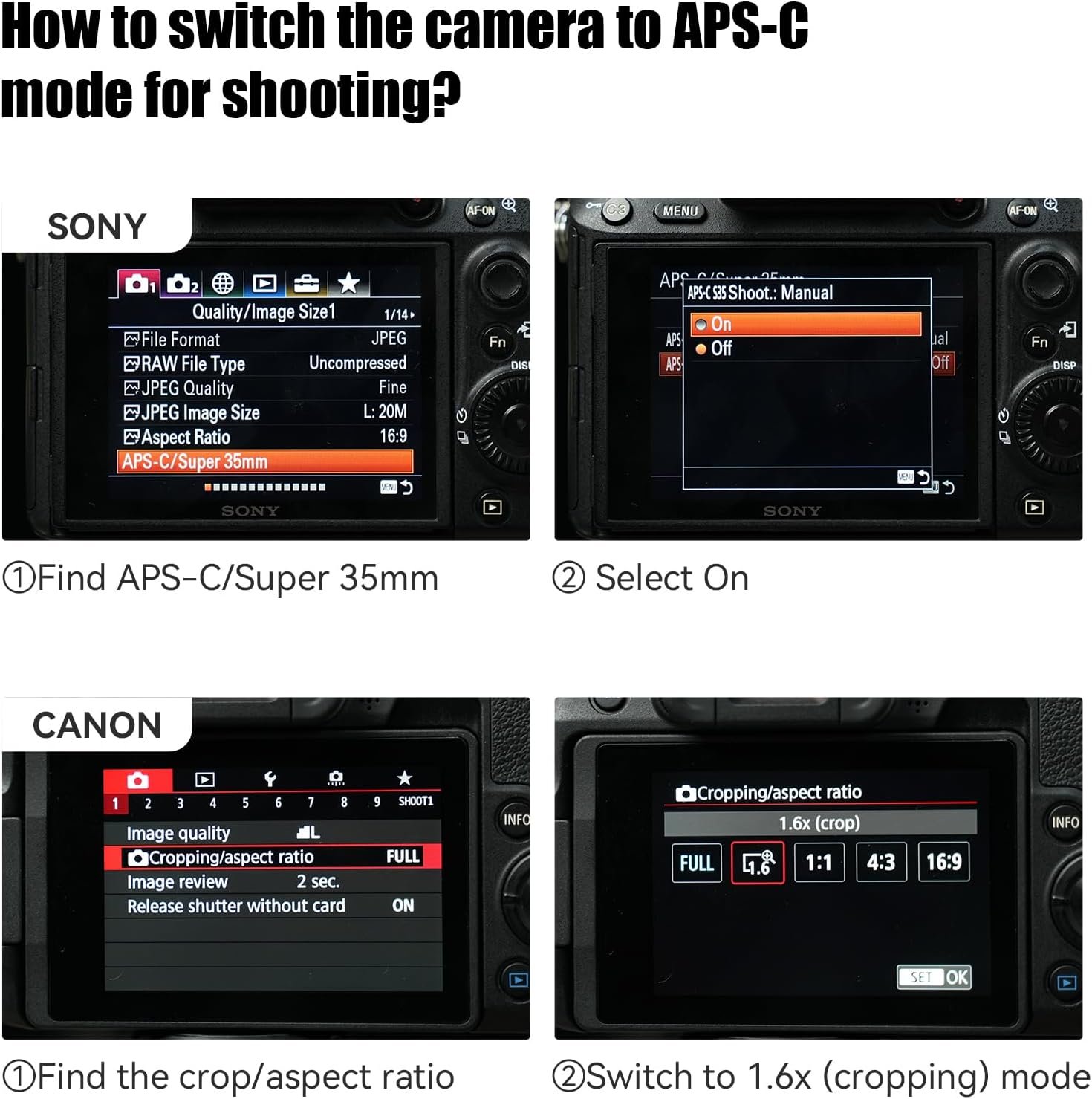 Applicable Mirrorless Cameras:Compatible with Canon RF Mount APS-C Mirrorless EOS R/EOS R3/EOS RP/EOS R5/EOS R6 Cameras
