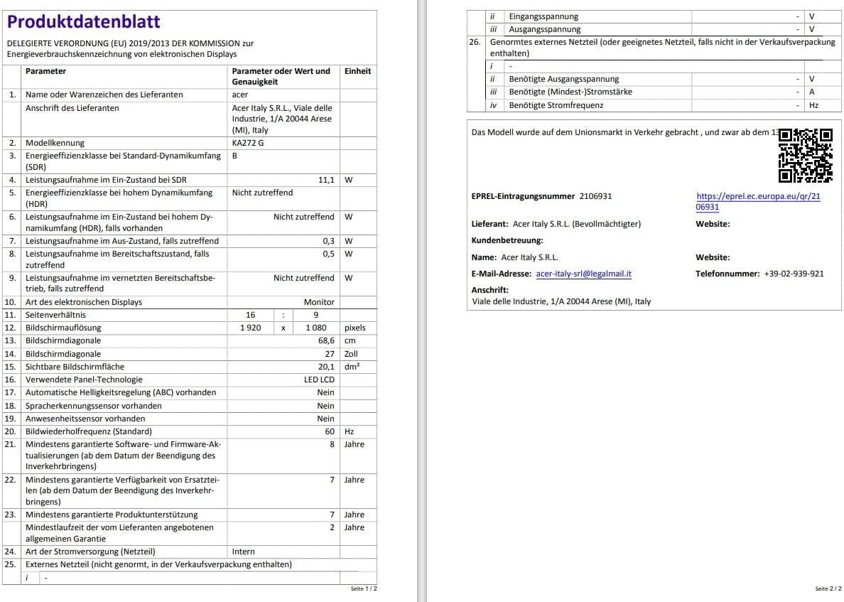 Be the first to review “Acer KA272Gbip Monitor 27 Zoll (69 cm Bildschirm) Full HD, 75Hz HDMI, 60Hz VGA, 1ms (VRB), HDMI 1.4, VGA, HDMI FreeSync [Energieklasse E] (UM.HX2EE.G05)”