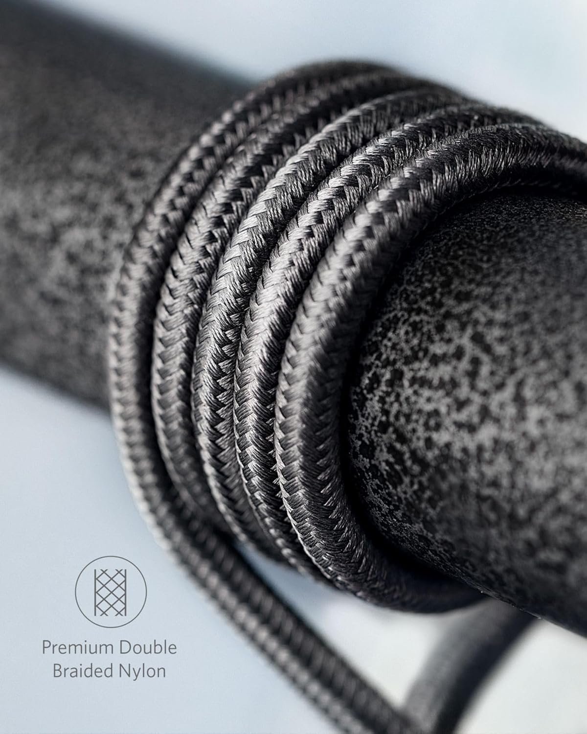 BUILT TO LAST – A tough nylon exterior and bulletproof fiber core combine to create a cable that can withstand up to 12,000 bends.