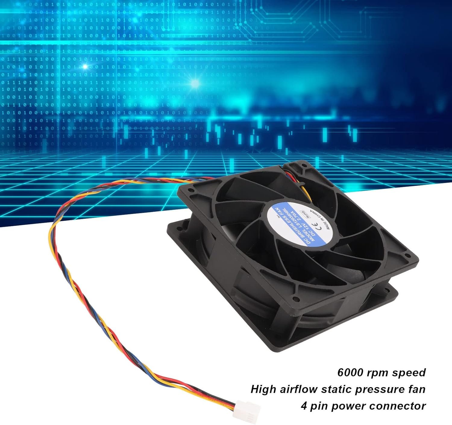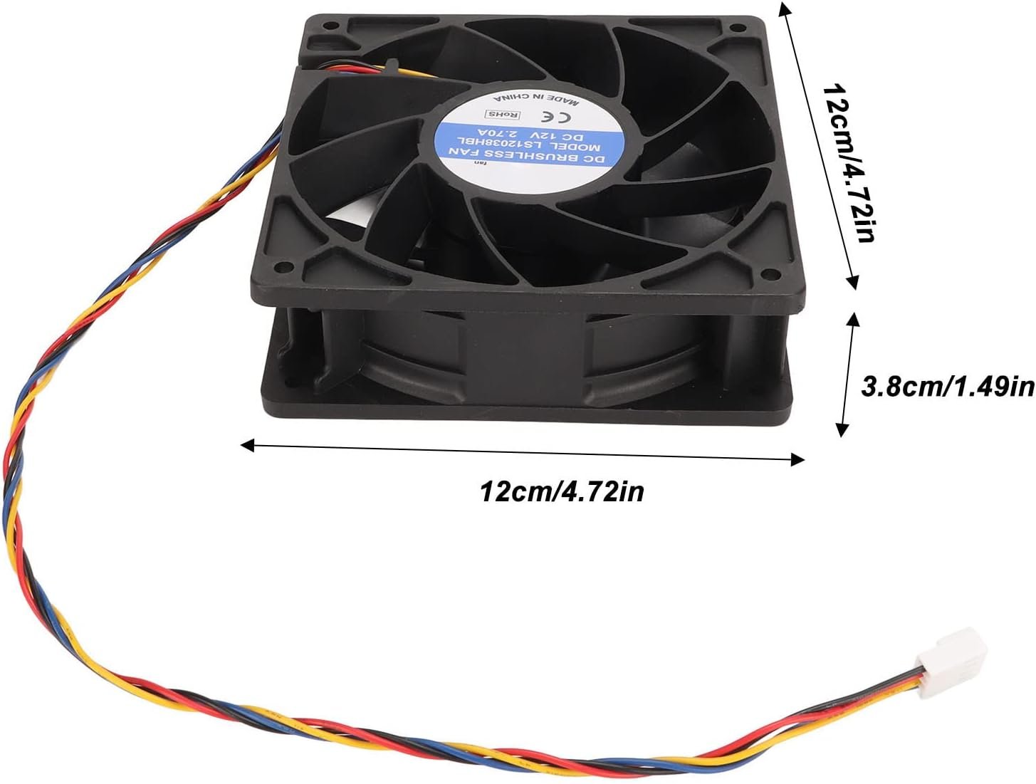 [Powerful & Efficient] This 4-pin cooling fan has a size of 120x120x38mm, rated voltage 12V, rated current 2.7A and operates at 6000RPM.