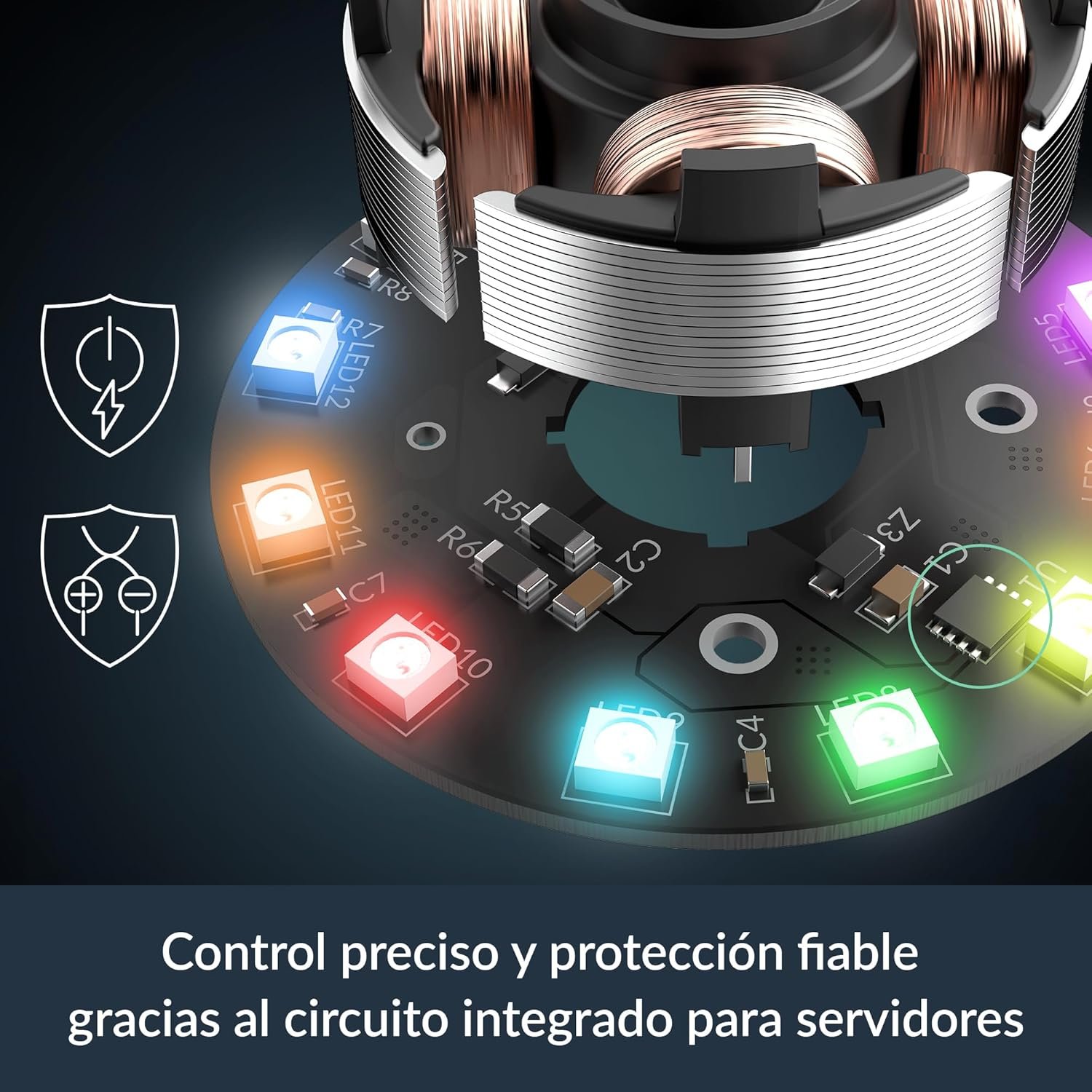 Reduce el ruido del motor y compensa automáticamente las caídas de velocidad debidas al aumento de la resistencia. Los mecanismos de protección integrados limitan los picos de corriente de entrada y protegen de manera fiable contra daños causados por polaridad inversa.