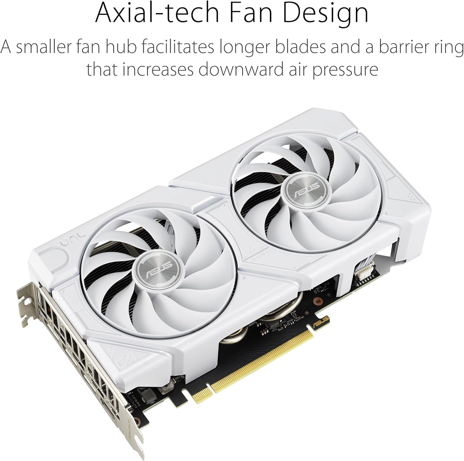 Axial technology fan design features a smaller fan hub that facilitates longer blades and a barrier ring that increases downward air pressure