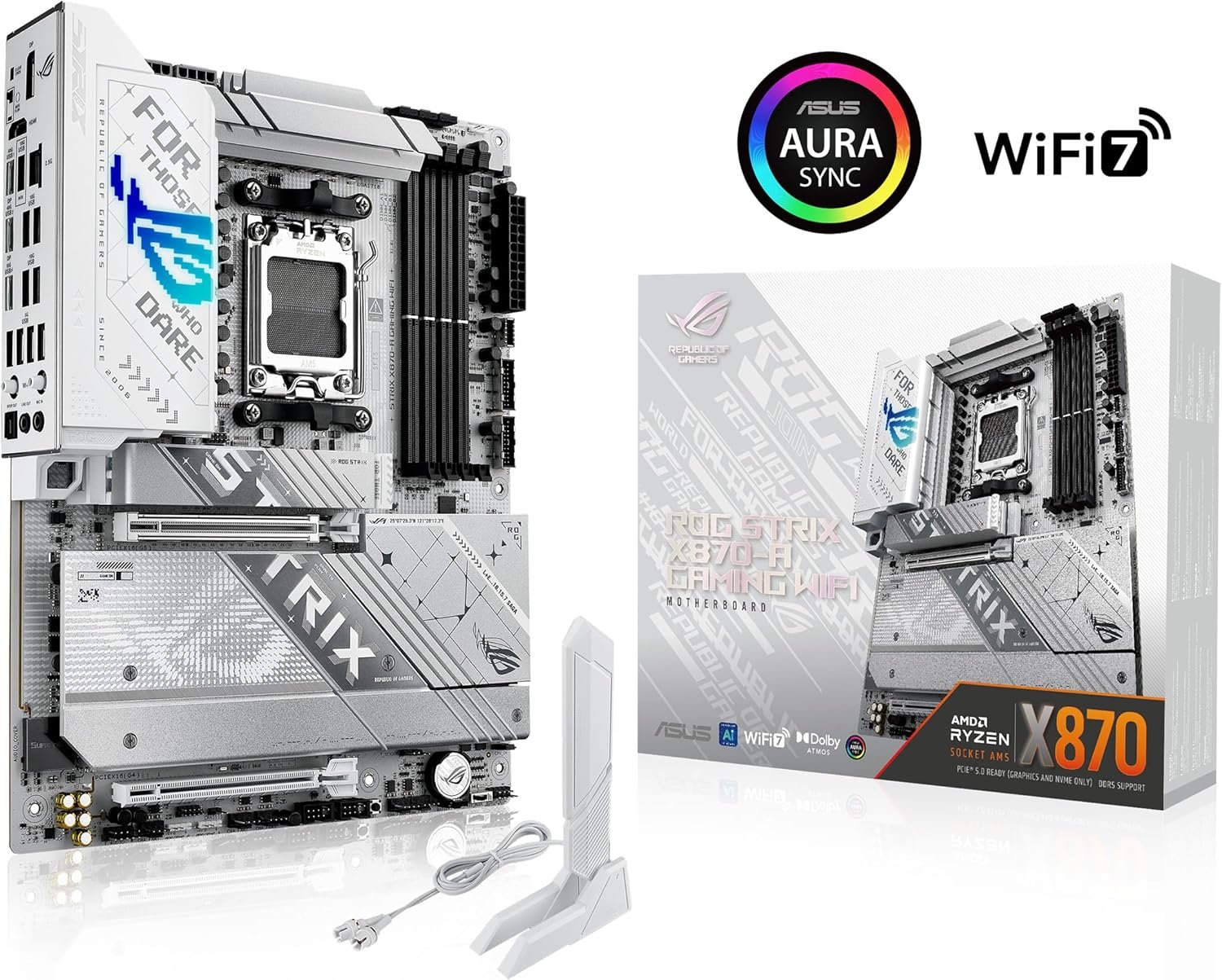 ASUS ROG Strix X870-A Gaming WiFi – placa base AMD ATX, 16+2+2 etapas de potencia, ranuras DDR5, cuatro ranuras M.2, PCIe 5.0 con compatibilidad total con GPU de próxima generación, WiFi 7
