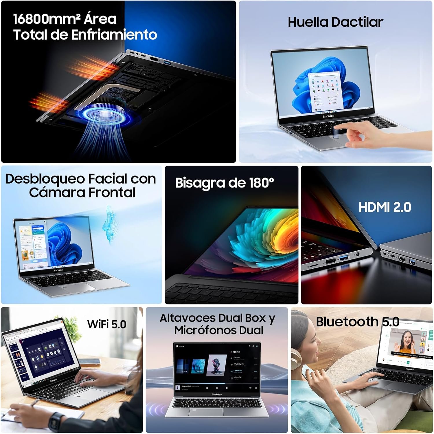 The Blackview Acebook8 portatil is a powerful laptop from 2025. Equipped with an N150 processor, it reaches a maximum frequency of 3.6GHz and reduces power consumption by 17%. With 16GB DDR4 RAM and 512GB SSD, plus expandable storage via TF card, it offers high speed and large space for multitasking and storage, ideal for work and entertainment.