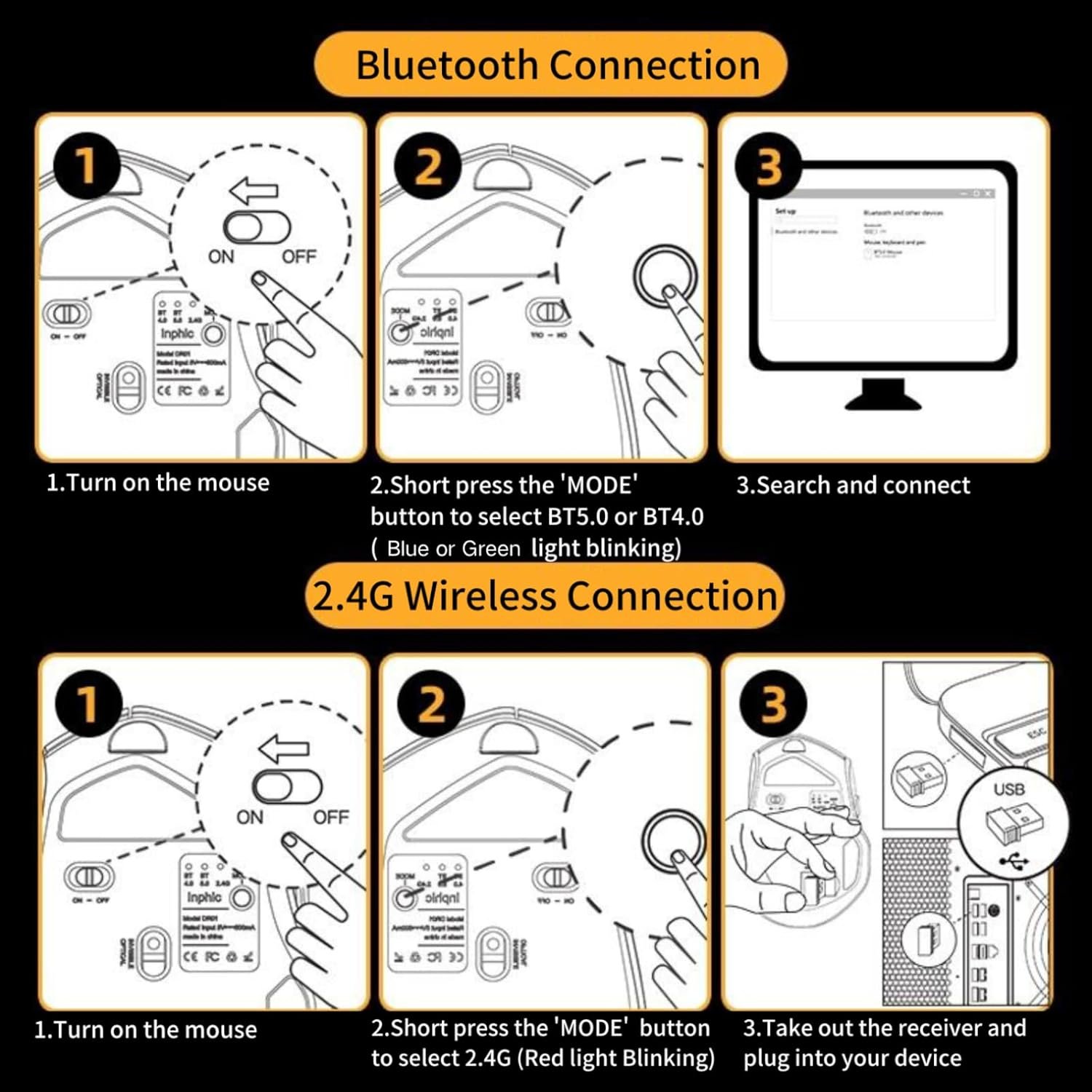THREE-MODAL CONNECTIVITY – Our wireless mouse supports 2.4G and Bluetooth connectivity (BT 4.0 and BT 5.0) for a seamless connection experience. Easily switch between desktop, laptop and tablet for a flexible and comfortable user experience