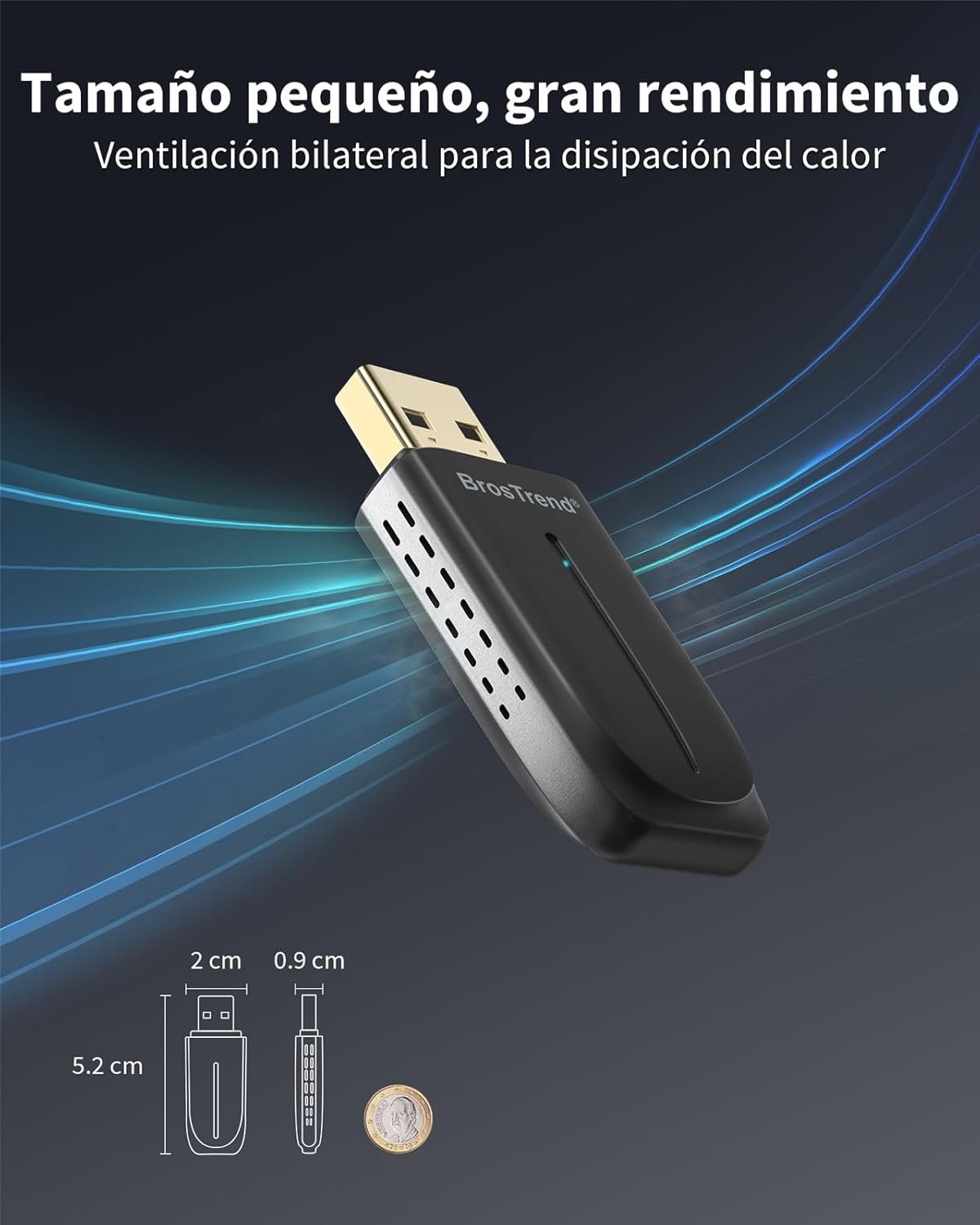 Compact and cool: With dimensions of only 5.2 × 2 × 1 cm, this Bluetooth WiFi USB easily adapts to any configuration: laptop, desktop, mini PC or tower PC. Ventilation holes on both sides enhance heat dissipation for long-term reliability.