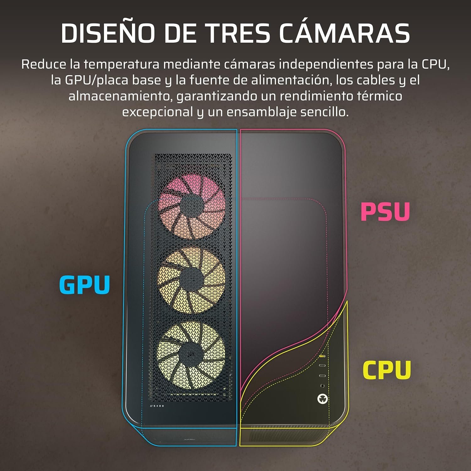 PSU and storage camera – features a third camera in which the power supply, storage and cables are located, and also includes its own intake and exhaust locations.