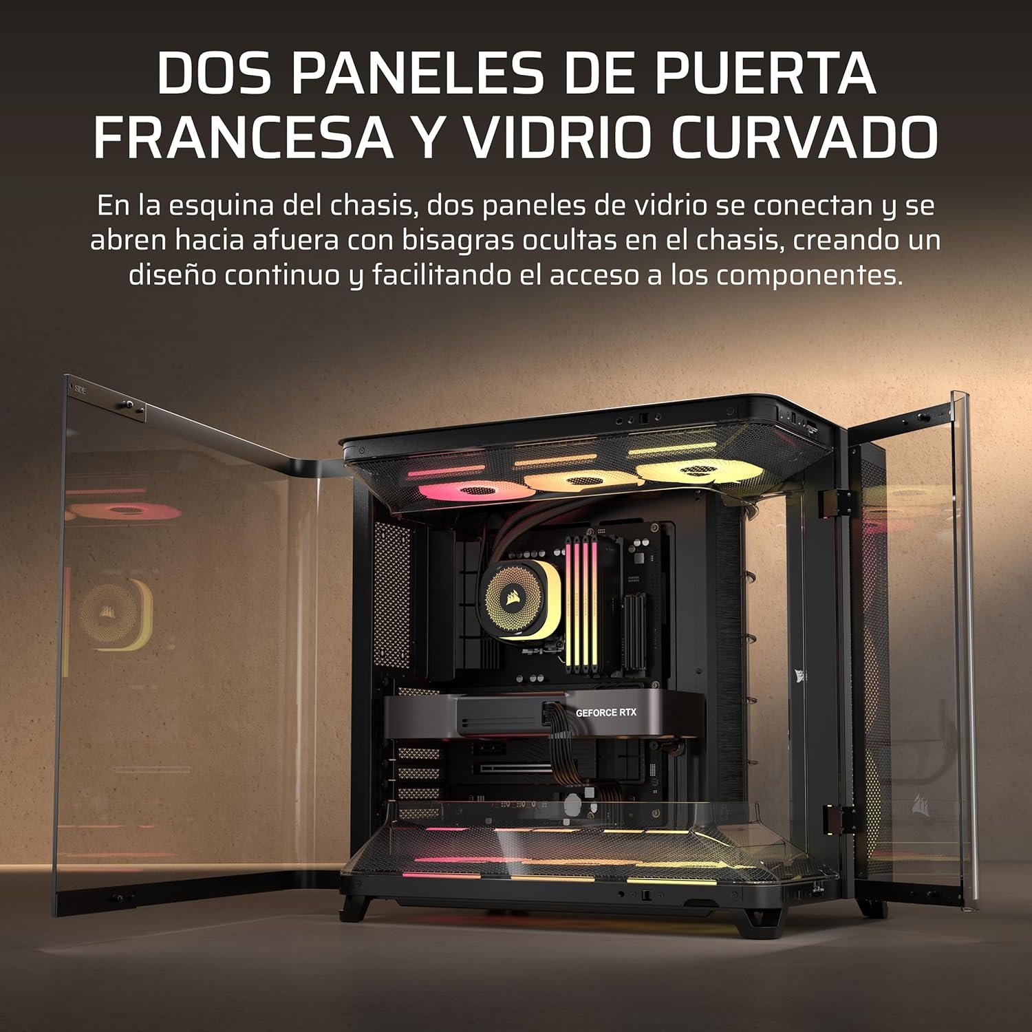 Curved Panoramic Glass Exterior – A wrap-around glass exterior curves around the front and back of the chassis, offering a truly unique, unobstructed view of the interior hardware from any angle.