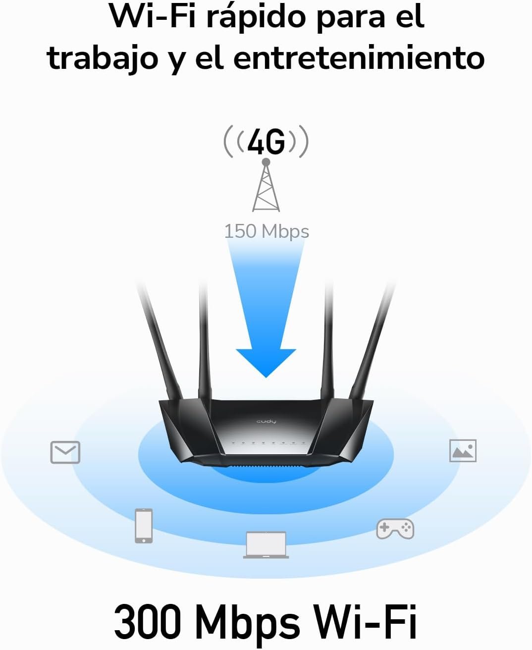 Enjoy ultra-fast 4G LTE speed and Wi-Fi. It uses state-of-the-art 4G LTE technology to reach speeds of up to 150Mbps on download and 50Mbps on load, it also allows you to connect via Wi-Fi with a maximum speed of 300Mbps at 2.4GHz to enjoy gaming, streaming and more.