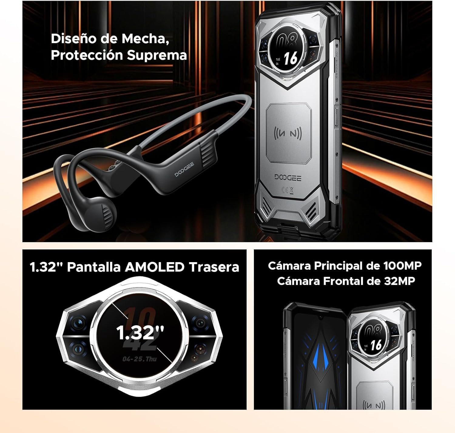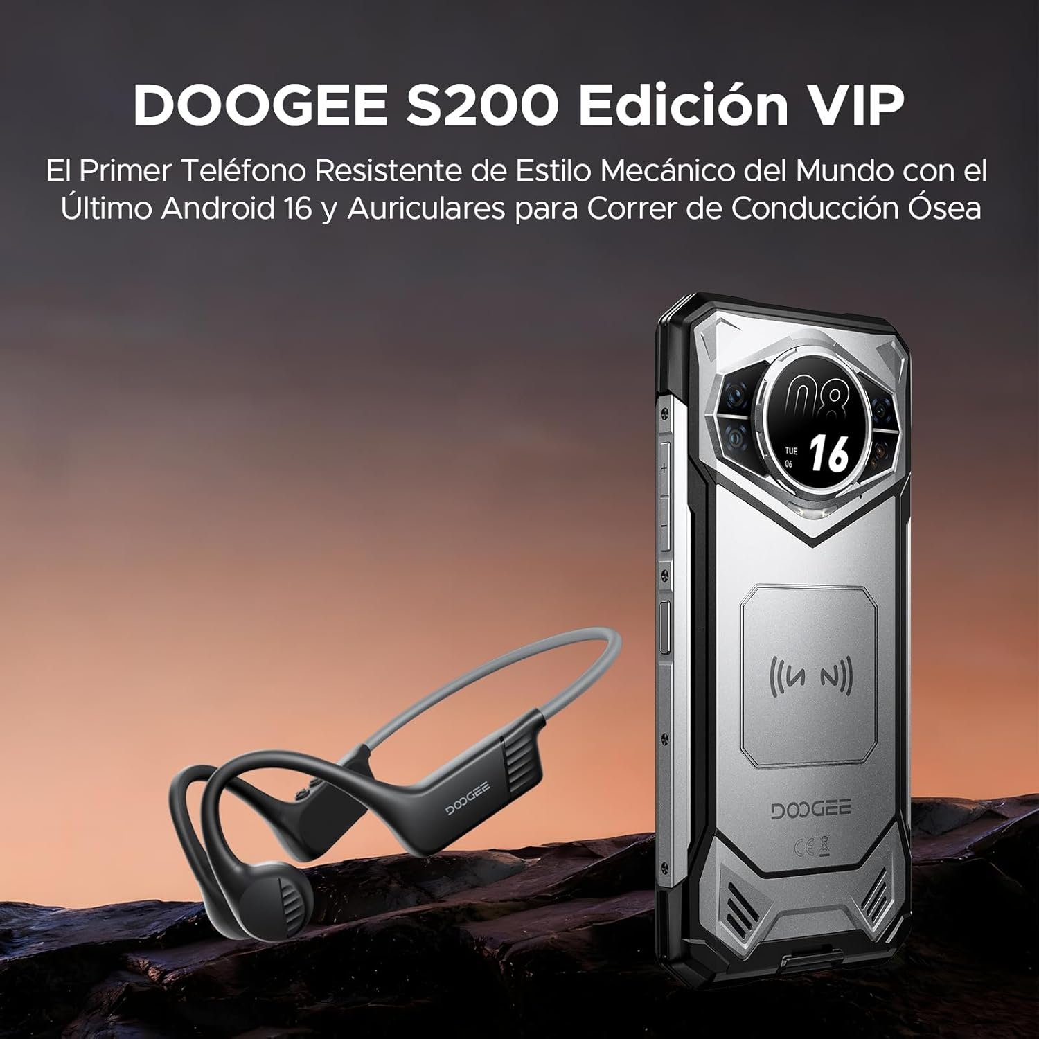 DOOGEE S200 Movil Irrompible 5G Android 16 con Auriculares de Conducción Osea