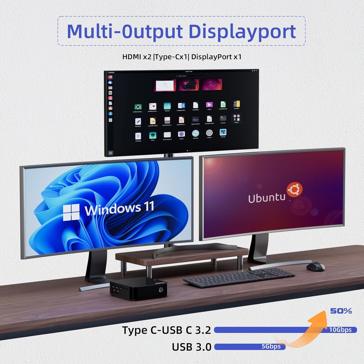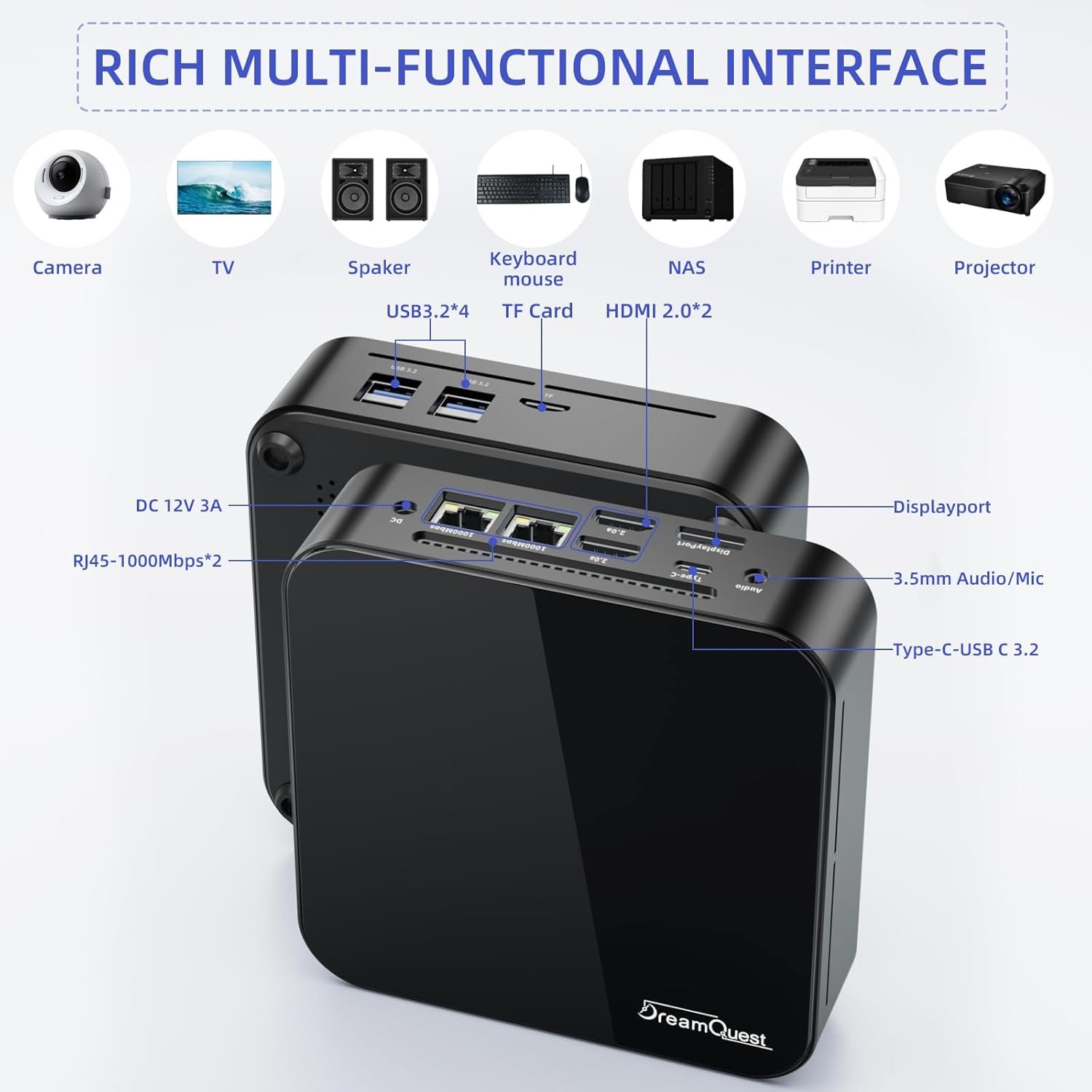【Excellent Triple UHD 4K Display】The mini computer features built-in 3 HMDI 2.0 interfaces, Intel UHD Graphics 600 ultra high resolution, supports multitasking, and allows to connect and display three screens easily. The mini desktop PC features two network connections (separate internal and external networks) and 2.4G+5G Wi-Fi to cover more areas and meet your network needs. Significantly improved work efficiency
