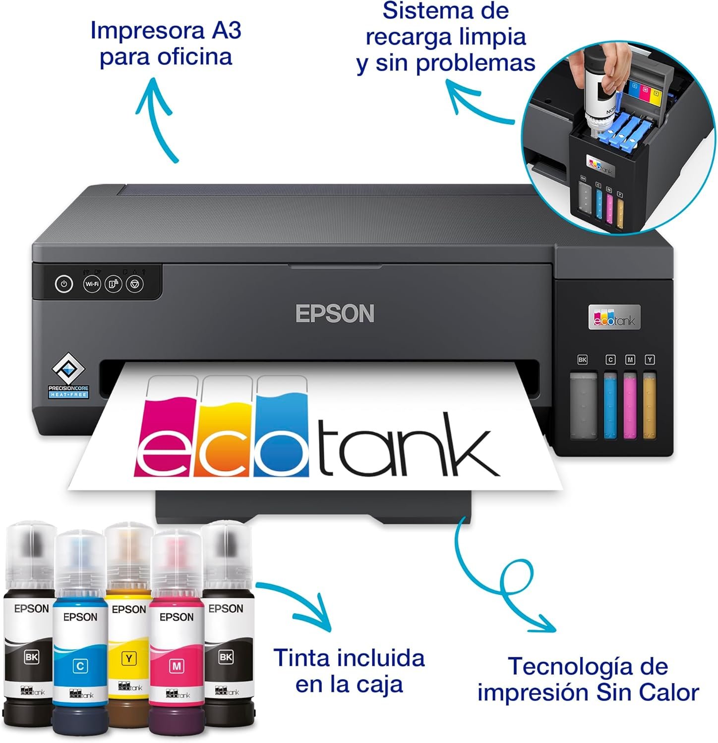Easy to Use Front Ink Tank – Enjoy hassle-free refills with upgraded ink bottles