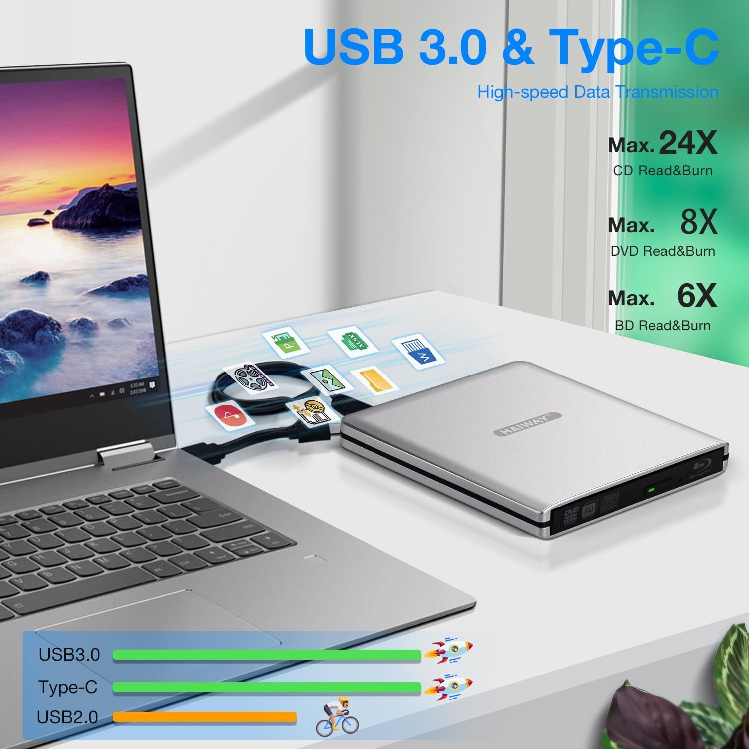 Unleash Haiway your multimedia experience with Haiway External Blu-ray Drive