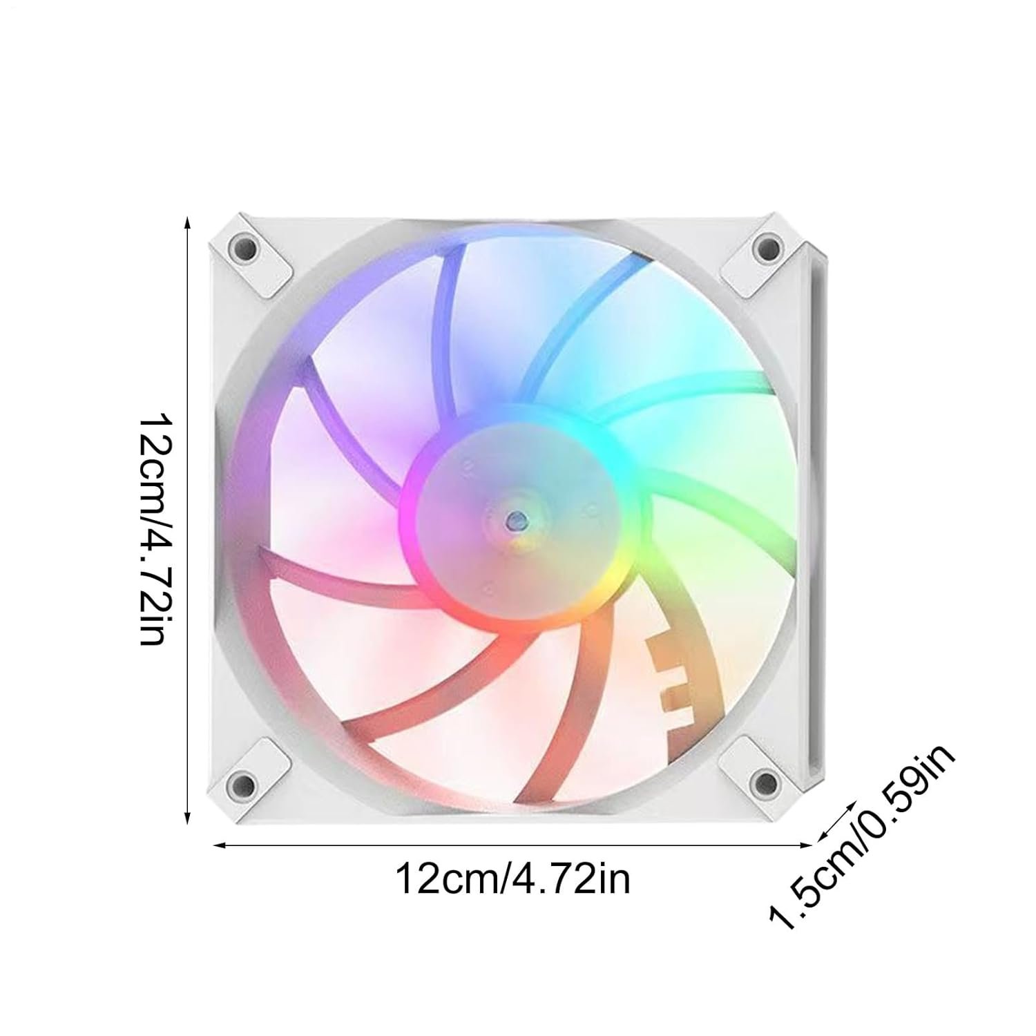 Especificaciones Nombre: Ventilador de enfriamiento del chasis Color: blanco, negro Estilo: luz de color negro en el marco Tamaño del producto: aproximadamente 12.0×12.0x1.5cm/4.72×4.72×0.59 pulgadas Velocidad: 800-1800 rpm
