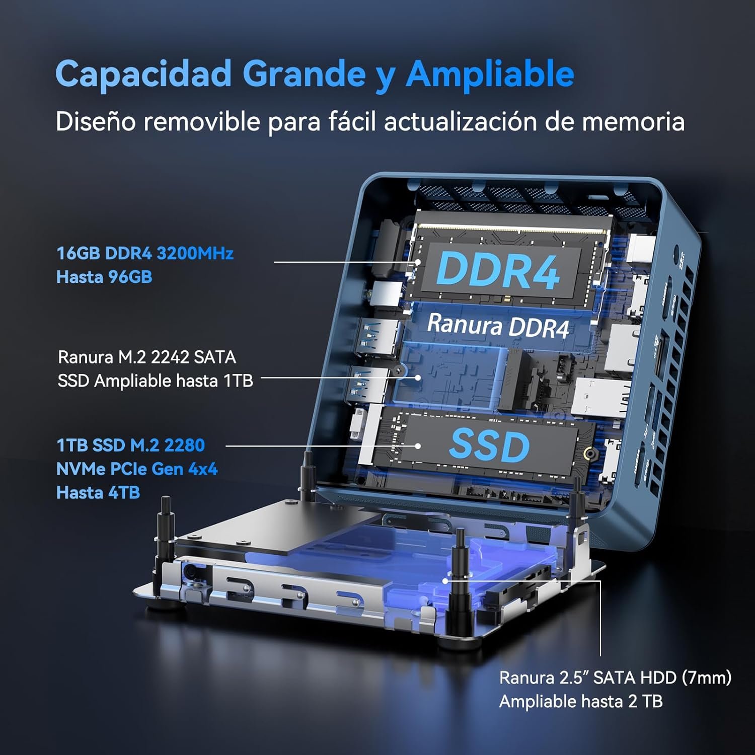【 You will be able to enjoy the performance of your PC – While other mini PCs use soldered LPDDR (recycled, non-expandable and lower stability and service life), the GEEKOM IT12 with new materials and standard processes. This Mini PC features 16GB DDR4 (Dual Channel, expandable up to 96GB) and 1TB PCIe Gen4 x4 NVMe SSD (M.2 2280, expandable to 4TB). It also includes an M.2 2242 SATA slot (up to 1TB) and a 2.5″ SATA bay (up to 4TB) for flexible, massive storage.