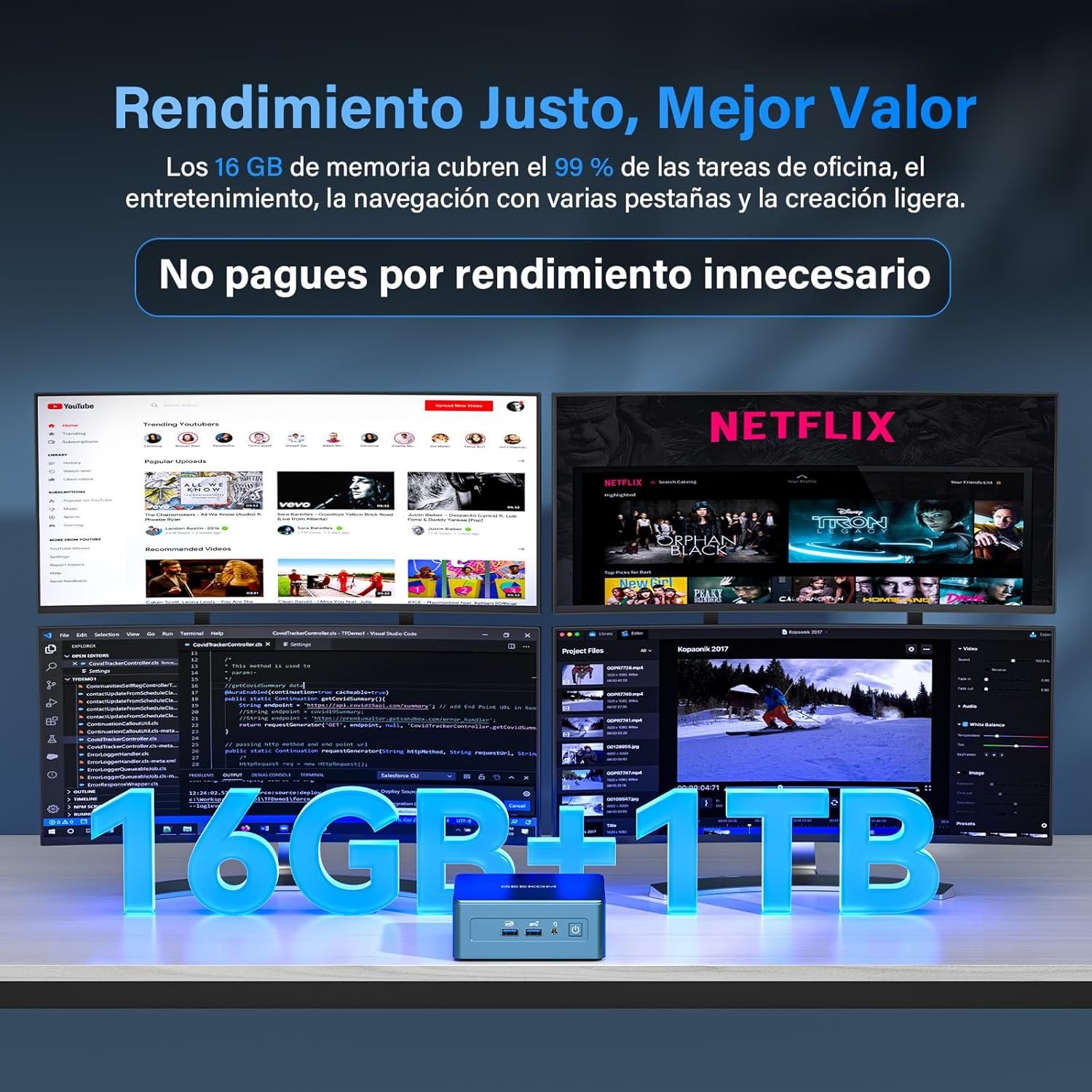 【16GB The Ideal Balance Between Performance and Efficiency】- 16GB of RAM delivers smooth performance, reduced consumption and more rational use of the budget. They are more stable than 8GB and more efficient than 32GB, covering most daily tasks like work, study, and entertainment. They also decrease heat and noise and allow for quieter, longer lasting operation. With a 1TB SSD you get better use of resources and a more economical and sustainable option.
