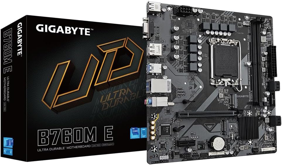 GIGABYTE B760M E Motherboard – Supports 14th Gen Intel Core Processors, 6+1+1 Phase VRM, up to 7200MHz DDR5 (OC), 2xPCIe 4.0 M.2, LAN 1GbE, USB 3.2 Gen 1