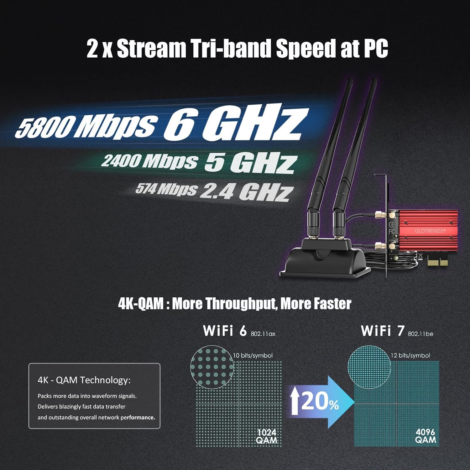Ultra-fast 5.8Gbps performance: With 2x spatial streams, 320MHz channels and 4K-QAM, it reaches speeds 2.4x faster than Wi-Fi 6/6E (2.4Gbps). Advantages: 8K video streaming without buffering, lag-free AR/VR gaming experiences, etc.