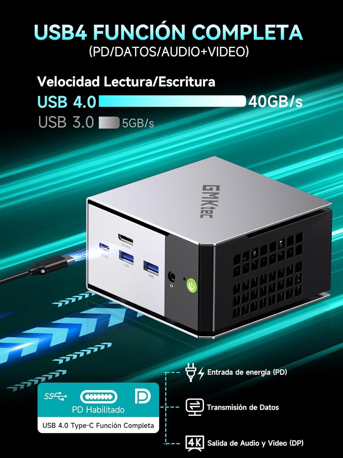 OCULINK PORT – The M8 Mini PC’s Oculink port offers higher bandwidth, better frame rates and lower latency. The standard operates at PCIe x4 speeds, compared to Thunderbolt’s x3. Gamers and content creators can benefit from OCuLink’s increased bandwidth, getting better performance and lower latency in eGPU configurations.