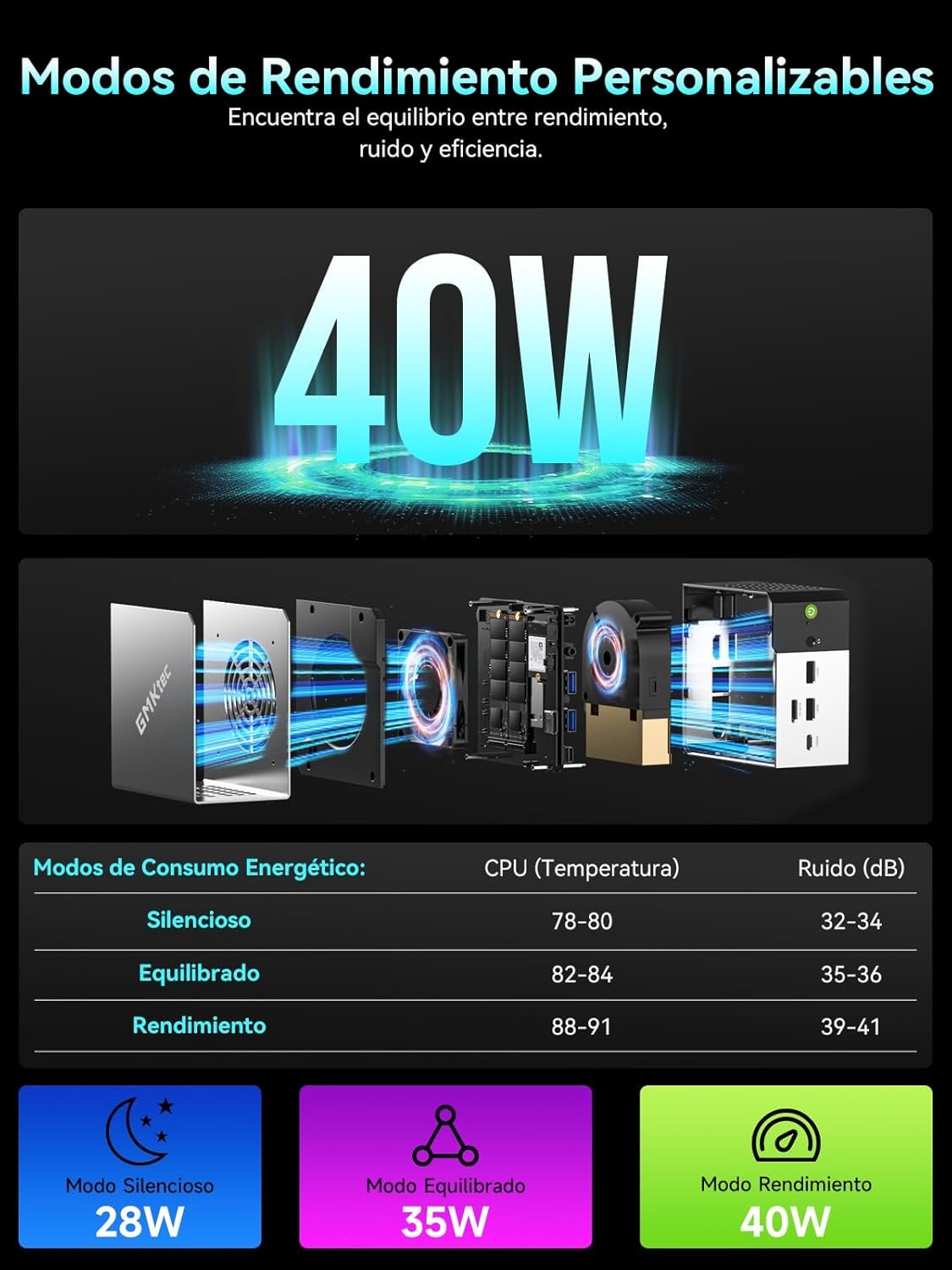 THREE PERFORMANCE MODES & UPDATED BIOS – The M8 Mini PC features a fully updated BIOS with three performance modes (Quiet 28W, Balanced 35W or 40W Performance). VRAM assignment is also possible, in addition to options such as Auto Power on and Wake-on-LAN.