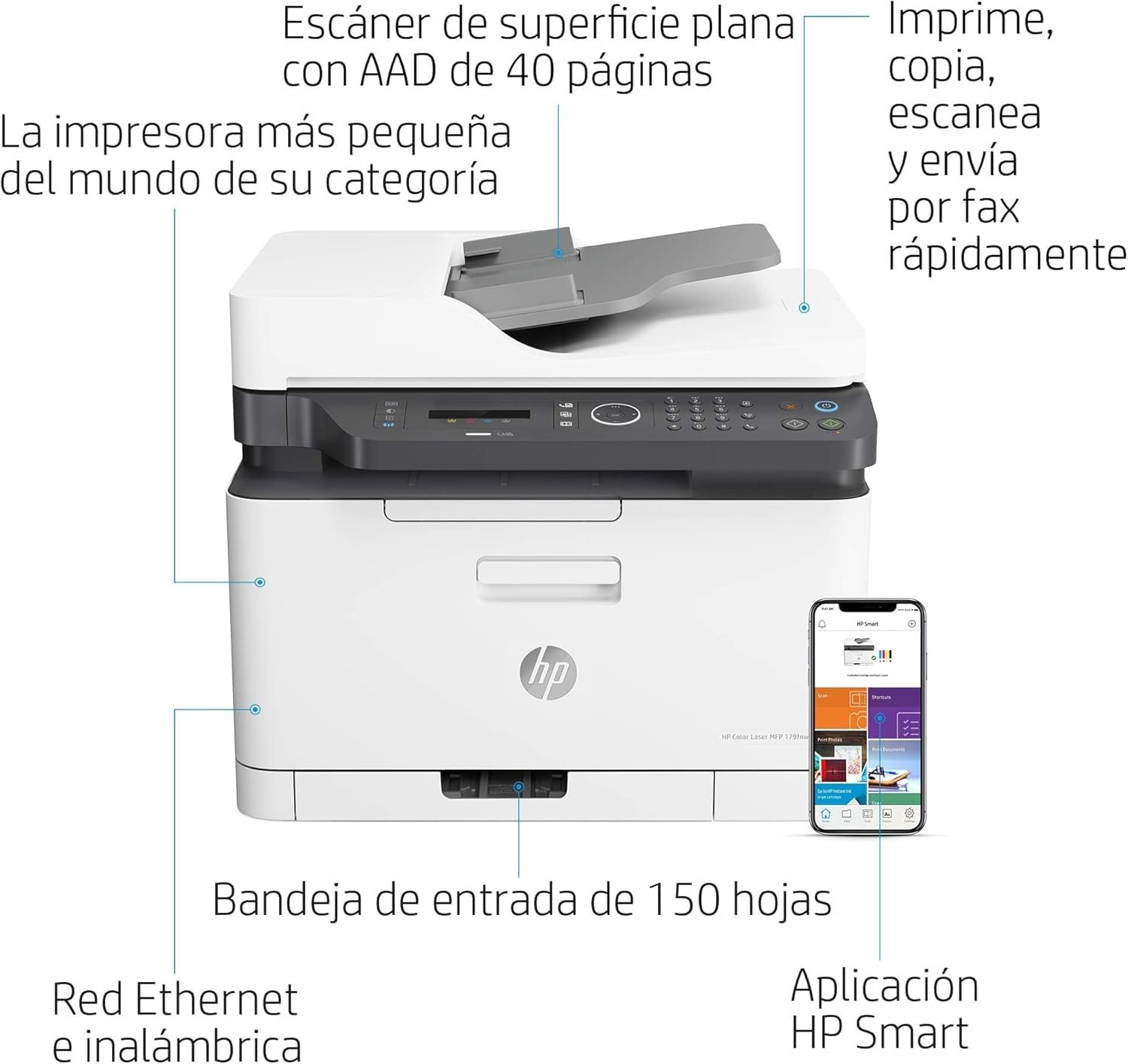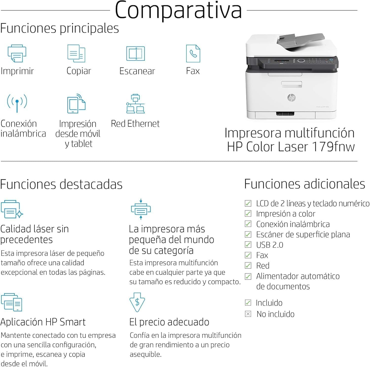Connectivity: Wi-Fi, Wi-Fi Direct, Fast Ethernet, USB 2.0 Hi-Speed Port, HP Smart App, Apple AirPrint and Mopria
