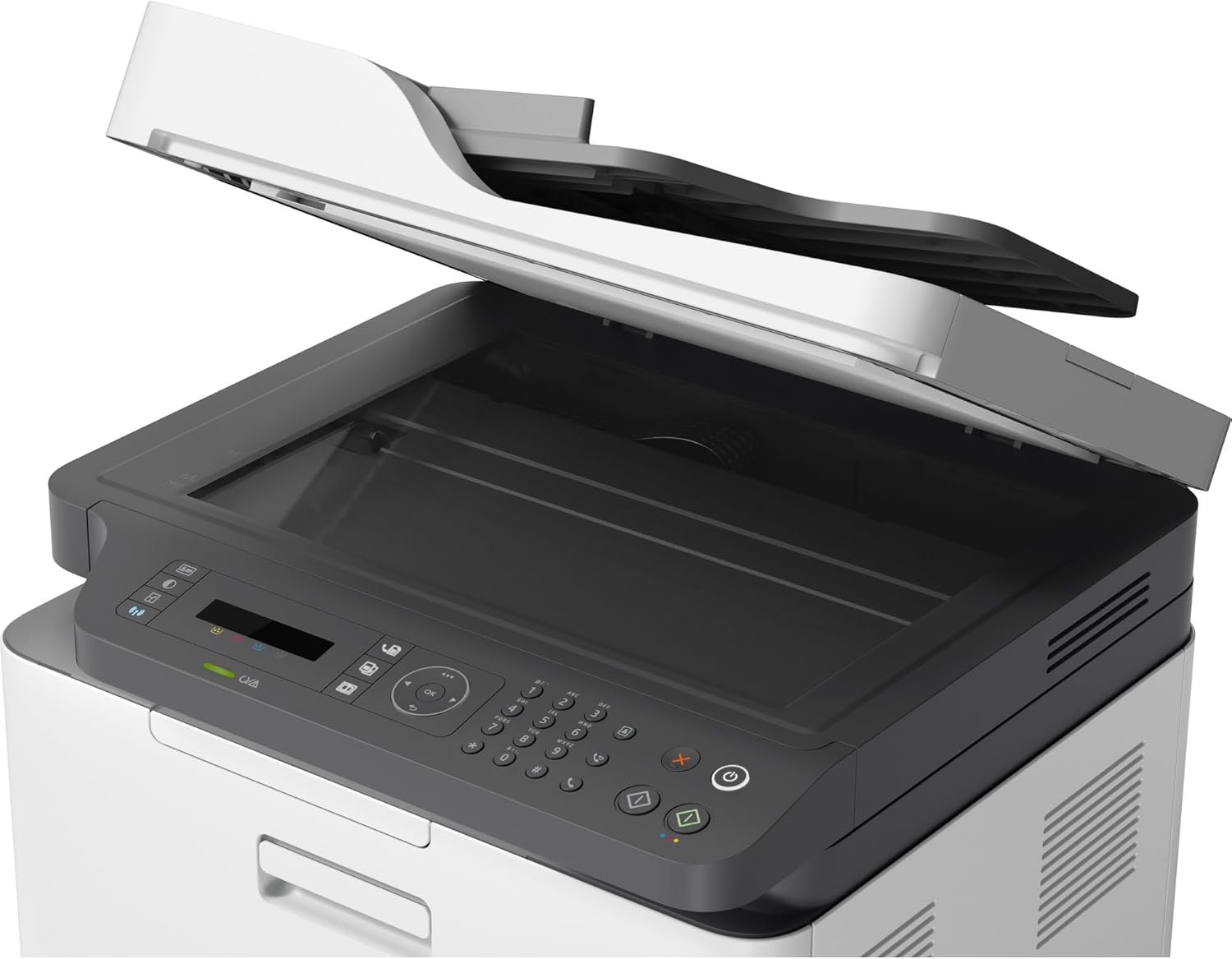 The main inbox has a capacity of up to 150 sheets and the 50-sheet output tray, plus a flat surface scanner and a 40-sheet AAD