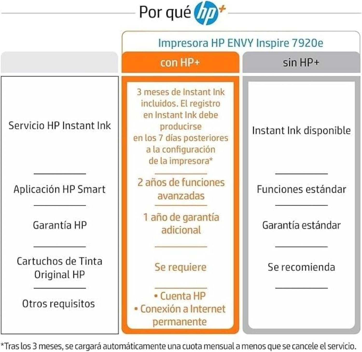 CHOOSE HP+ on setup and GET 1 YEAR WARRANTY and 6 MONTHS OF INSTANT INK INCLUDED, if you sign up for Instant Ink within 7 days of printer setup; Instant Ink is a printing service with which you receive cartridges at home, before running out of ink, with recycling included and without worrying about Nothing; Includes the tint. to, shipping and recycling from only €1.79/month