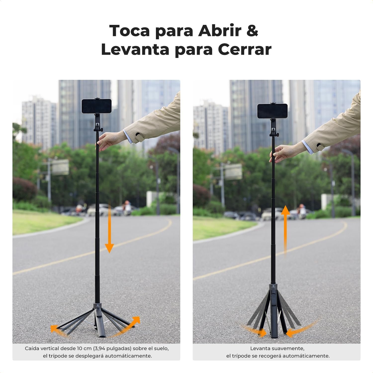 Fast Folding: This iPhone tripod opens and closes easily for convenient operation. In addition, the K&F CONCEPT tripod extends up to 72in/180cm and folds to just 11in/29cm. Weighing only 0.88lb/400g, it’s easy to store and take with you wherever you want.