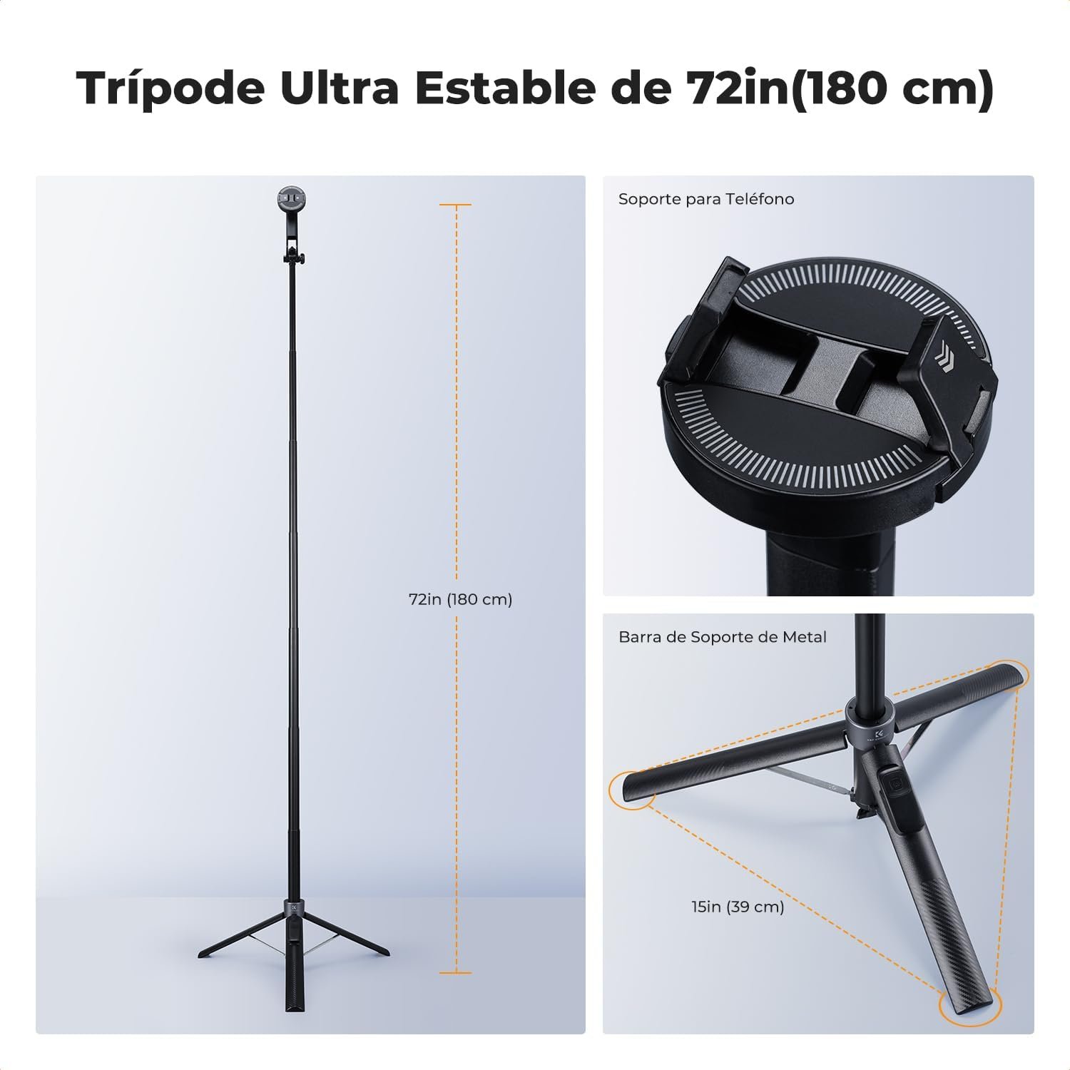 【Bluetooth Remote Control & Stability】This iPhone tripod includes a rechargeable Bluetooth remote, freeing your hands for effortless recording. This selfie stick for android has an aluminum alloy telescopic pole. When fully extended, its tripod legs reach a width of 15in/39cm, providing stability and making it an ideal choice for content creators and vloggers.