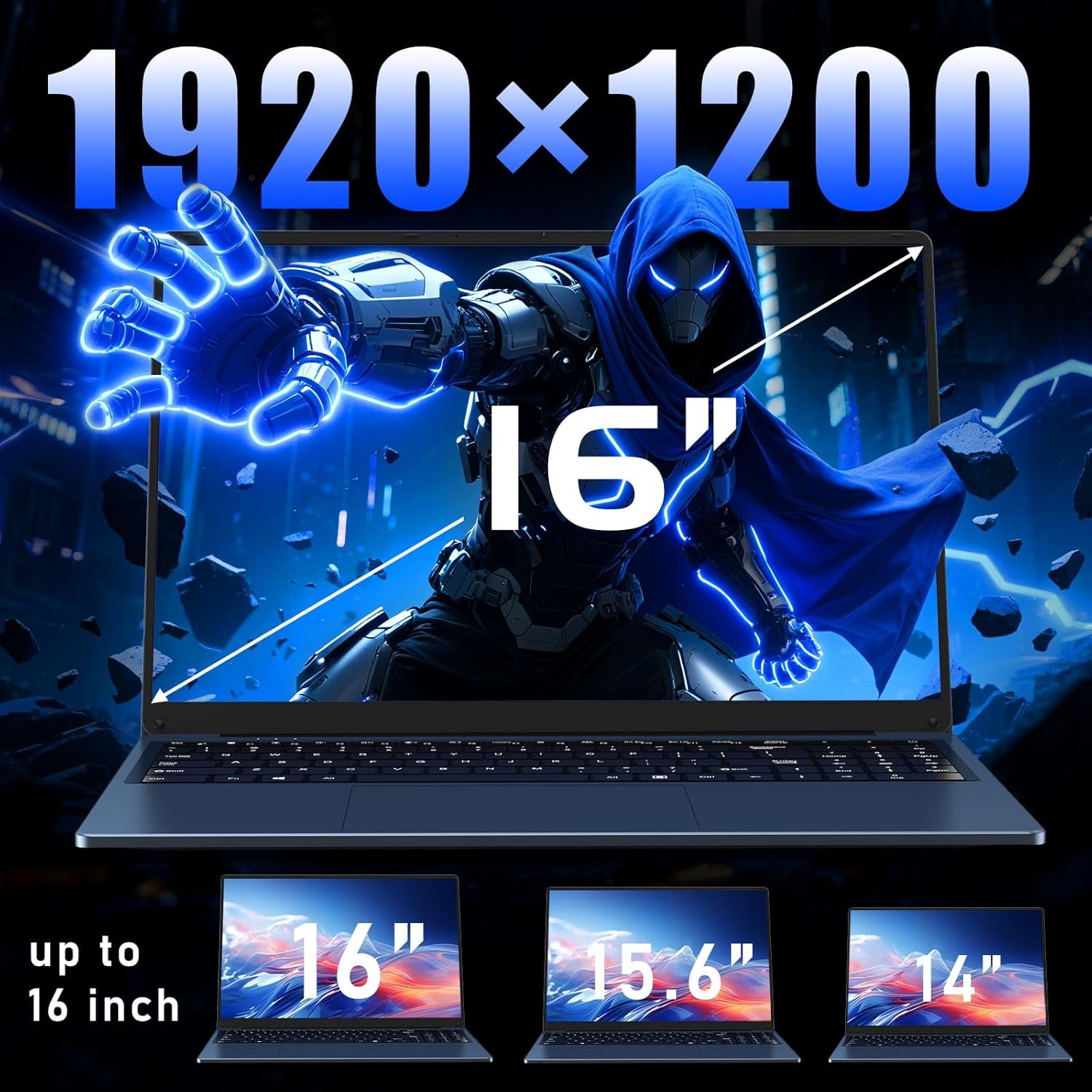【16-inch FULL HD Display】 The CHIFUYOU laptop is equipped with a 16-inch FULL HD display with a resolution of 1920 × 1200. With a golden ratio of 16:10 and ultra-thin 4mm frames, it achieves a screen-to-body ratio of 90% for an immersive visual experience. Text appears crisp and sharp, while images show rich detail. Whether it’s audiovisual entertainment, competitive gaming, video editing or content creation, it delivers an exceptional visual experience. A built-in 0.3 megapixel HD camera at the top of the screen allows you to start video calls with friends and family at any time.