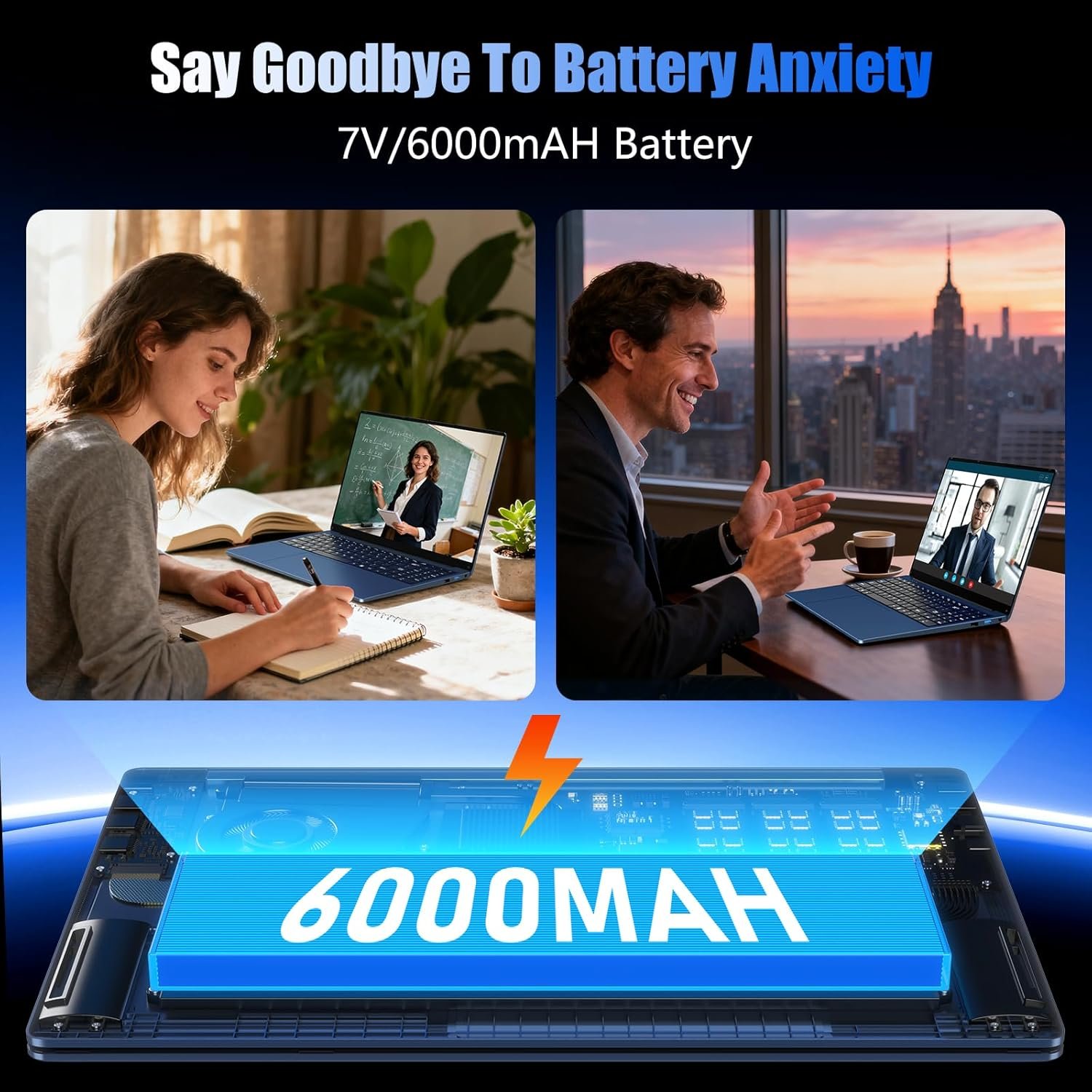【Long Battery Life & Backlit Keyboard】Equipped with a built-in high-capacity 6000mAh/46.2Wh battery, this device offers exceptional durability. Whether plugged into the mains or powered by battery, it always ensures optimal performance. In addition, the laptop incorporates a two-level backlit keyboard, which improves usability in low light conditions and meets the needs of office work, study or mobile entertainment.