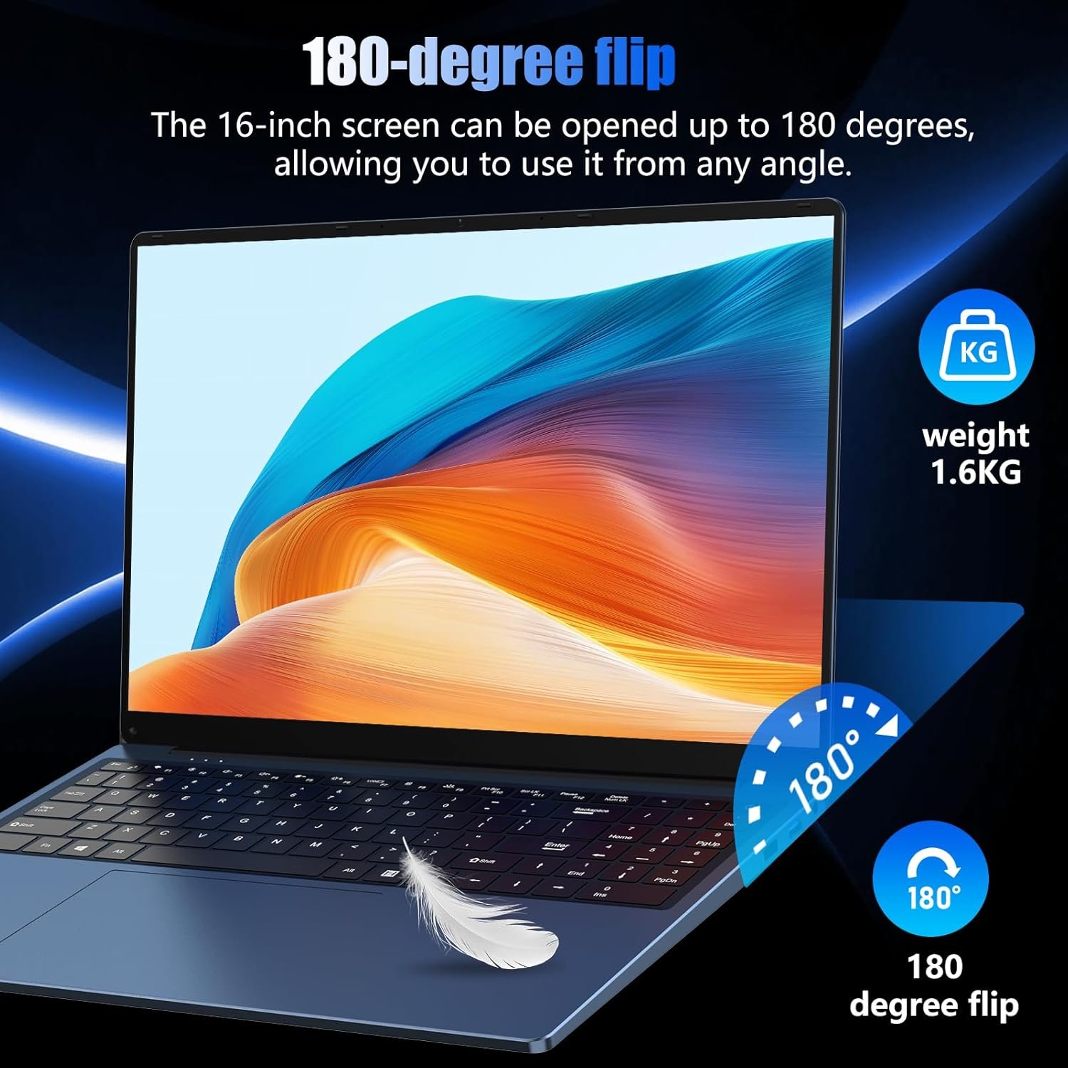 【Versatile & Portable, Slim & Lightweight】Weighing only 1.6kg and a thickness of 20mm, this laptop is slim and portable, but at the same time sturdy and durable, making it easy to take anywhere. The 180° flat hinge design allows flexible screen angle adjustment, making it easy to collaborate with team or content sharing; its robust metal frame withstands daily bumps and pressures.