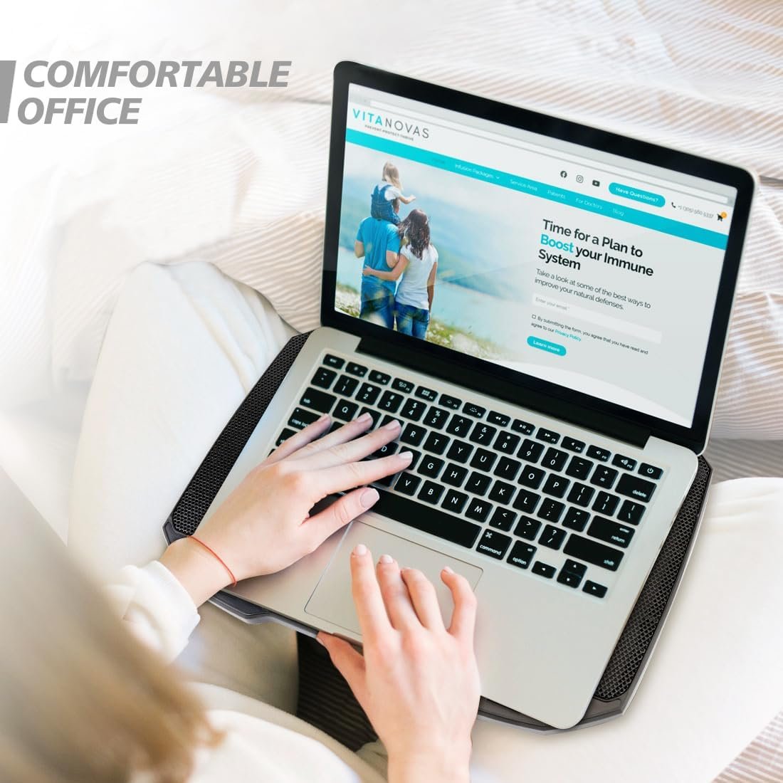 The laptop cooling fan has a metal bar for ergonomic design at the bottom, providing a lifting mechanism, and 5 adjustable stand height settings add more space for laptop and desktop, good for laptop heat dissipation then lower the temperature.