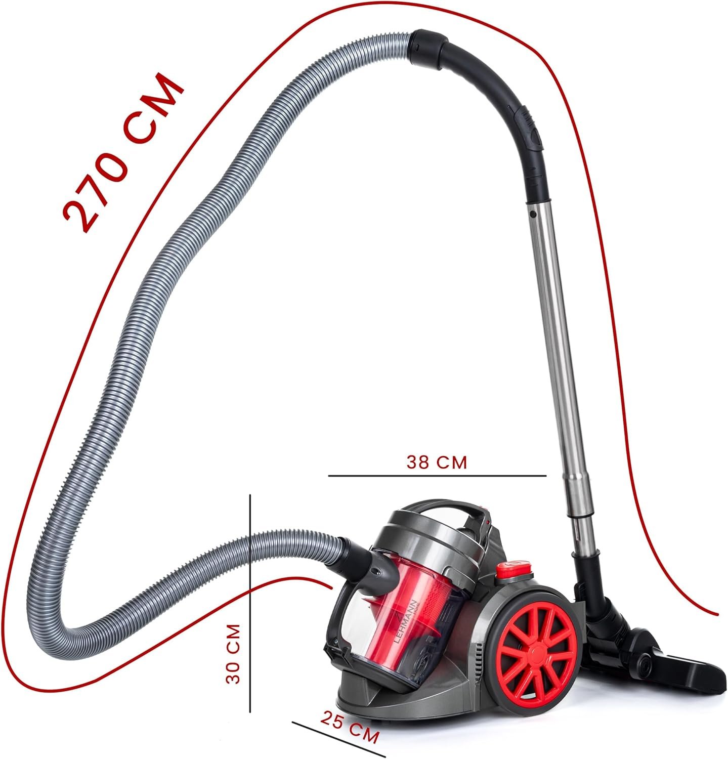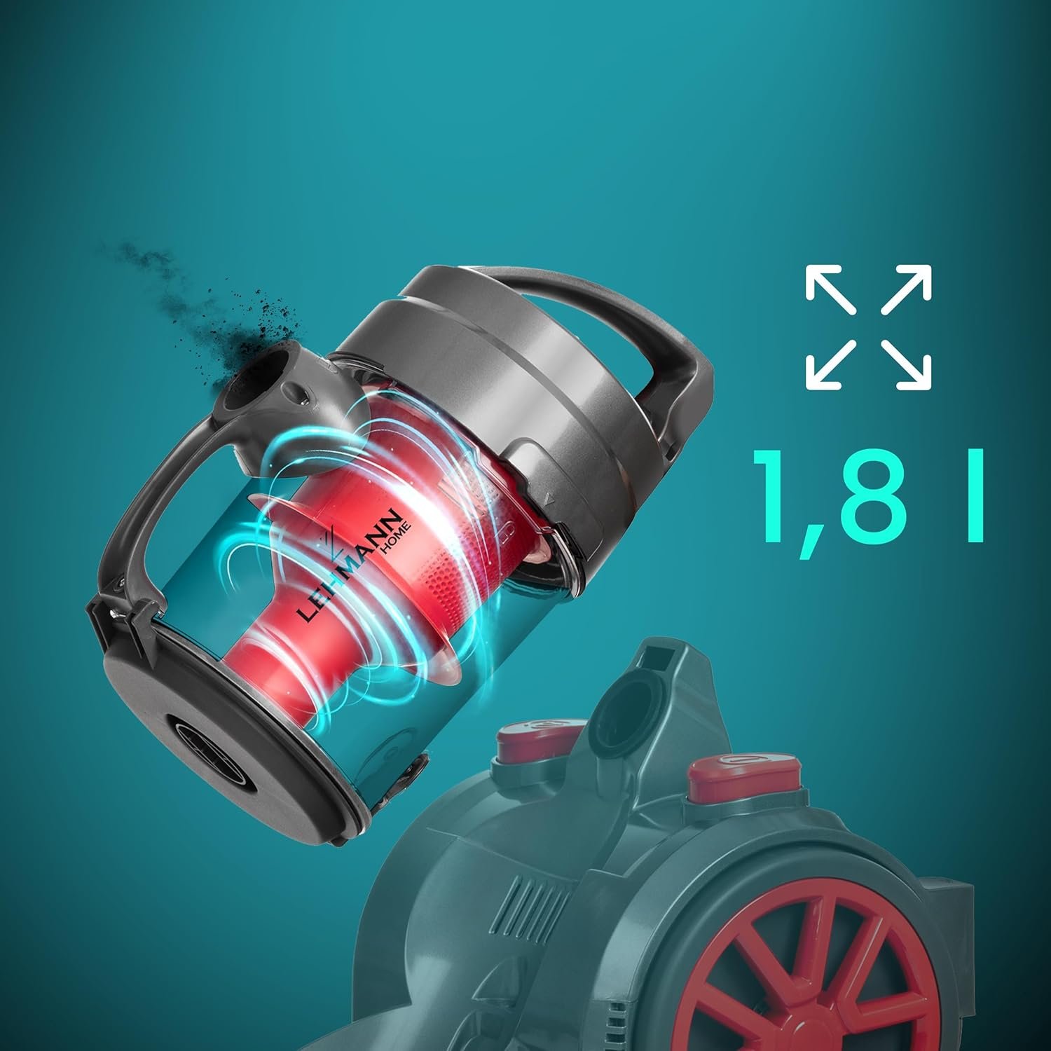 The cyclone vacuum cleaner has no bag, but a 1.8 litre tank where the sucked air collects and separates dirt. In addition, it does not produce unpleasant odors, as mites, bacteria and other microorganisms do not accumulate in its chamber.