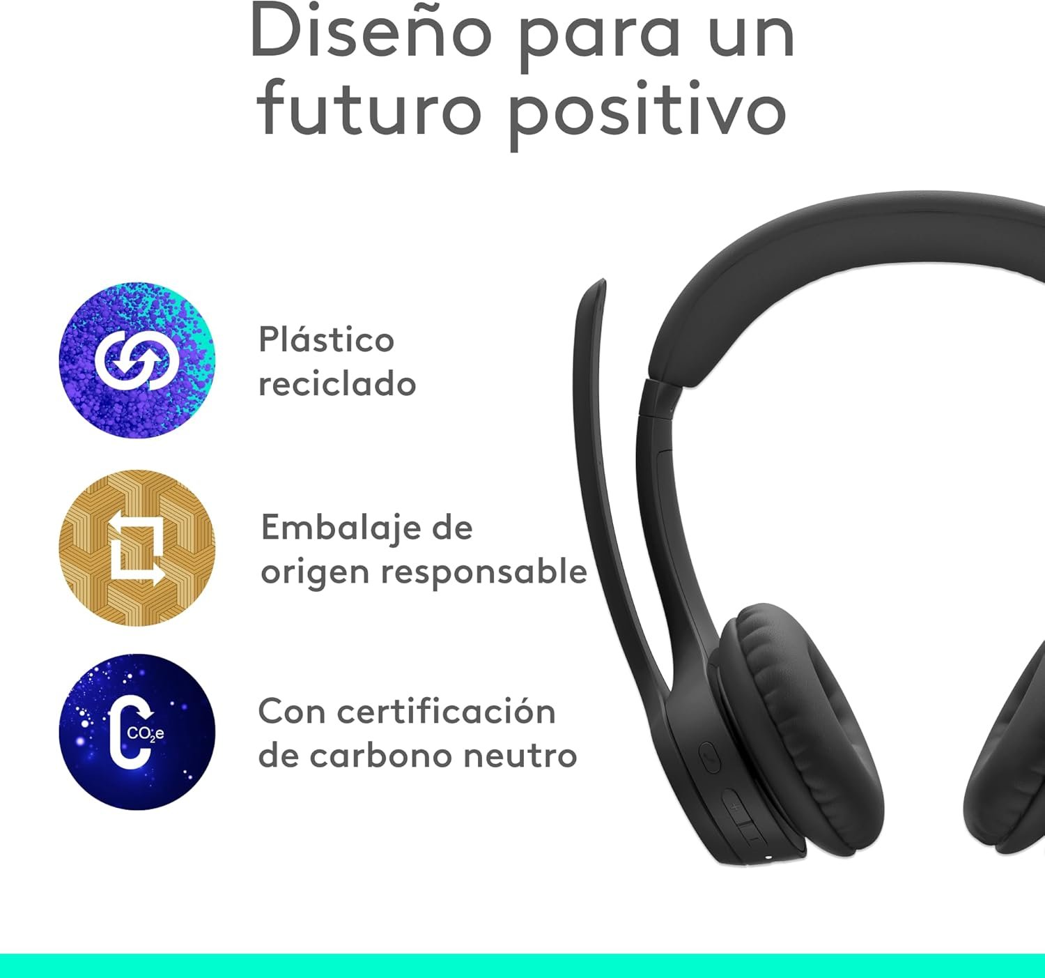 Logitech Zone 300 Wireless Bluetooth Headphones with Mic are carbon neutral certified and include certified post-consumer recycled plastic (Black: 55%, Off-White and Pink – 42%)(4)