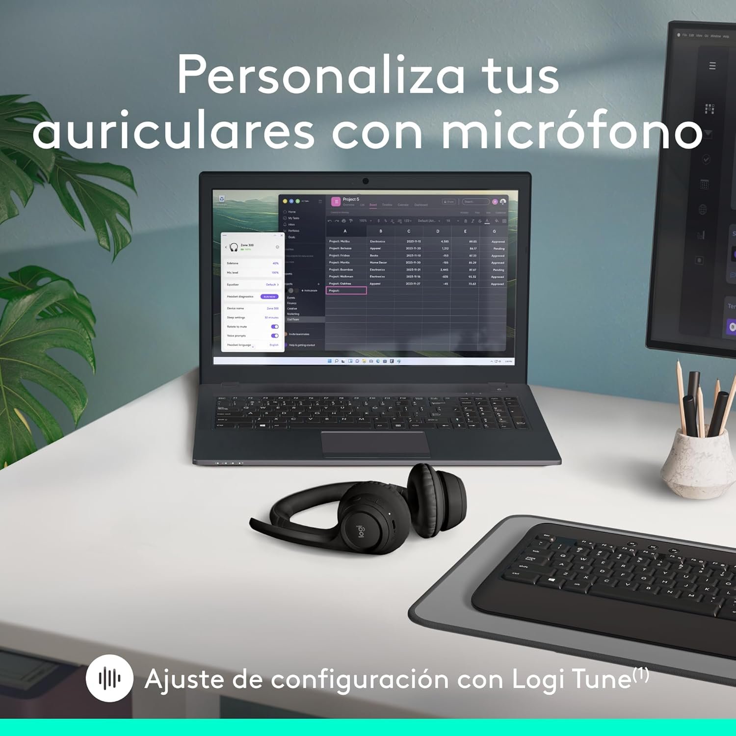 Personaliza el audio con Logi Tune(1) – Ajusta el tono lateral, el nivel del micrófono y el ecualizador.