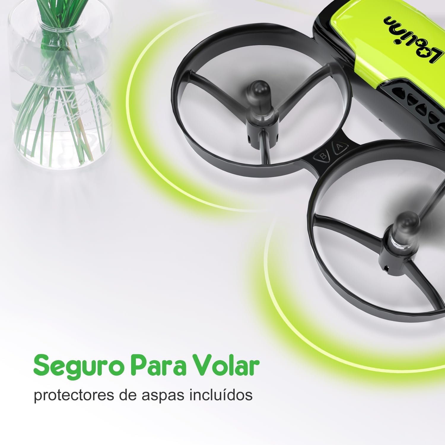 El dron incluye un protector de seguridad en las hélices que evita lesiones por las palas giratorias. Es seguro para que jueguen los niños.