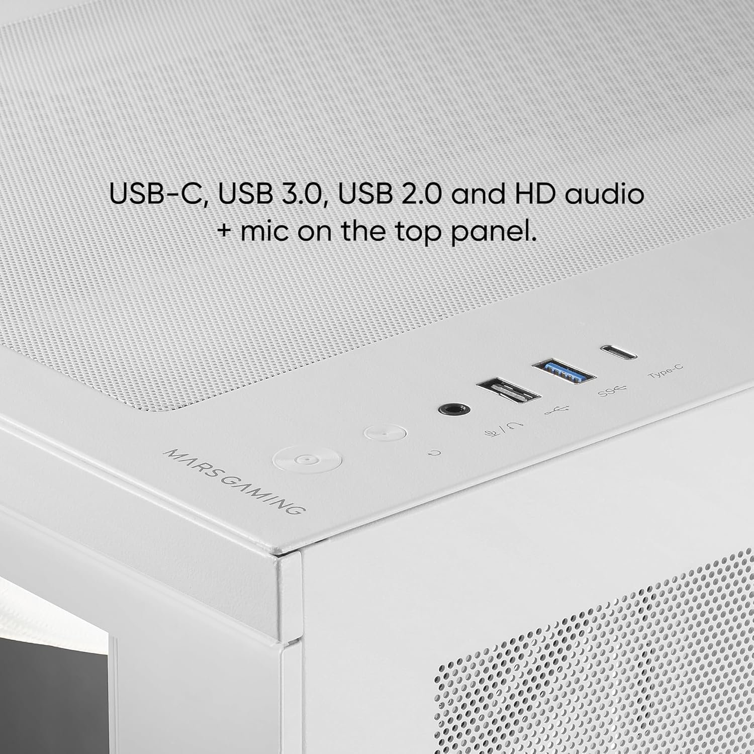 DUAL CAMERA STRUCTURE AND MAXIMUM CONNECTIVITY: The MC-3TCORELCD ATX PC enclosure separates the power supply from the rest of the hardware with its dual side camera, hiding cabling and optimizing airflow; In addition, it incorporates USB-C, USB 3.0, USB 2.0 and HD + mic audio ports on the top panel