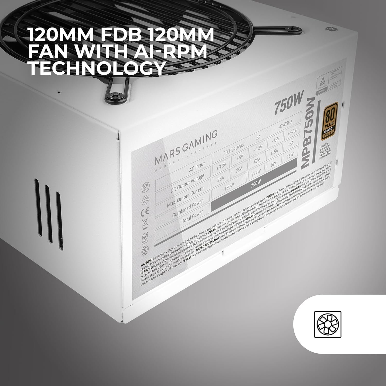 ABSOLUTE SILENCE: Equipped with a 120mm FDB fan, advanced AI-RPM technology, control IC and Active PFC technology, the MPB750 source ensures quiet operation, ensuring more efficient power delivery