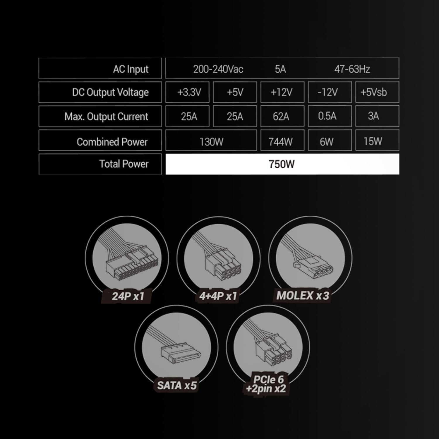 6 YEAR WARRANTY: The MPB750 power supply offers an extended 6-year warranty; In addition, it equips SMD manufacturing technology, high-quality components and has a wide range of electronic safety and protection systems: OPP, OVP, UVP, SCP and OCP; Developed in Europe and certified by the prestigious TÜV Rheinland laboratories