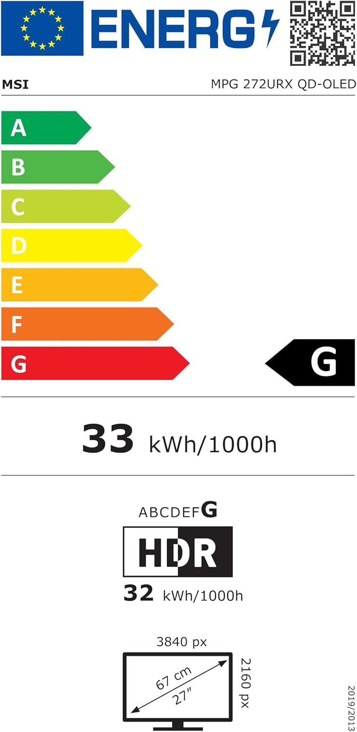 QD-OLED-The MSI MPG 272URX QD-OLED gaming monitor is equipped with a 5-layer tandem OLED panel with EL Gen 3 technology, which improves efficiency by up to 30%; this monitor delivers amazing clarity with 166 PPI and ensures reliable performance