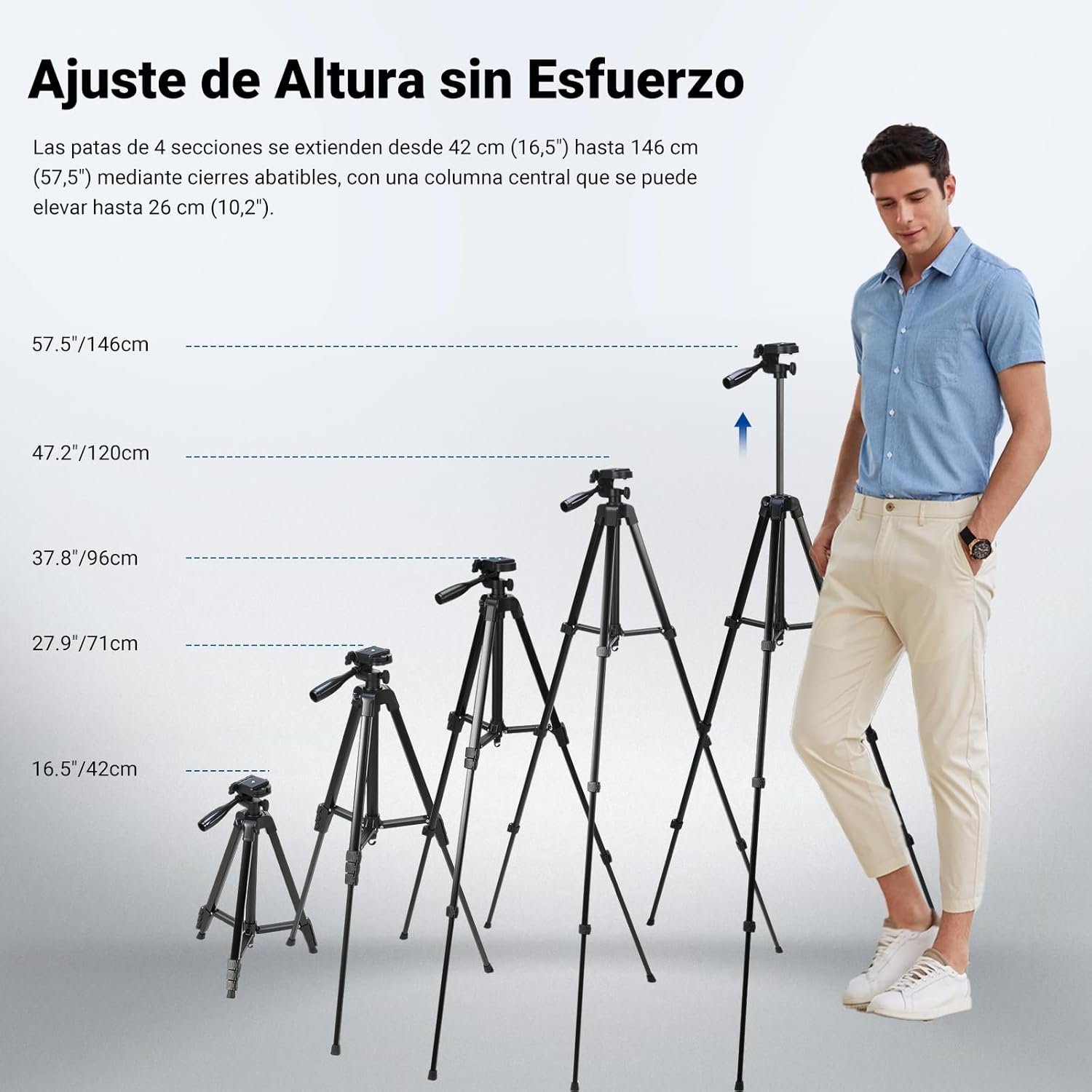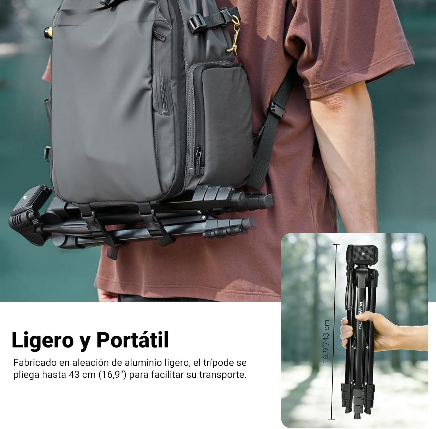 【Travel Tripod Metal Construction】Made of sturdy aluminum alloy, the lightweight tripod with phone holder securely mounts a DSLR (compatible with Canon Sony Nikon cameras), an action camera (adapter not included) or a smartphone up to 3.3 lb/1.5 kg for selfies, vlogging creation, live streaming, filming, etc. Weighing 1.25 lb/1.25 lb/1.5 kg. 568g, Portable tripod folds down to 16.9″/43cm, with included carrying bag for photography