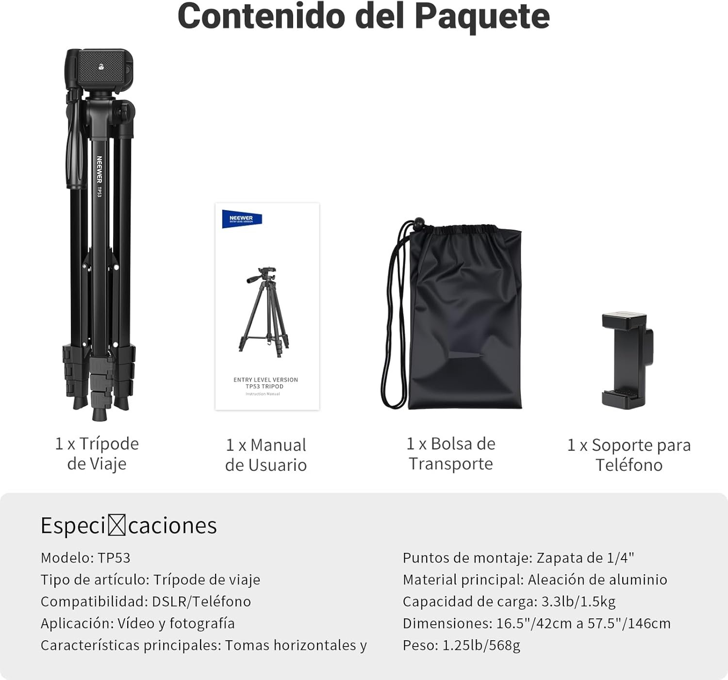 Be the first to review “NEEWER VERSION Level Input Tripod for Phone & Camera, Portable Lightweight Metal Travel Stand with Cold Shoe Mobile Phone Holder Compatible with iPhone for Video Recording, TP53”