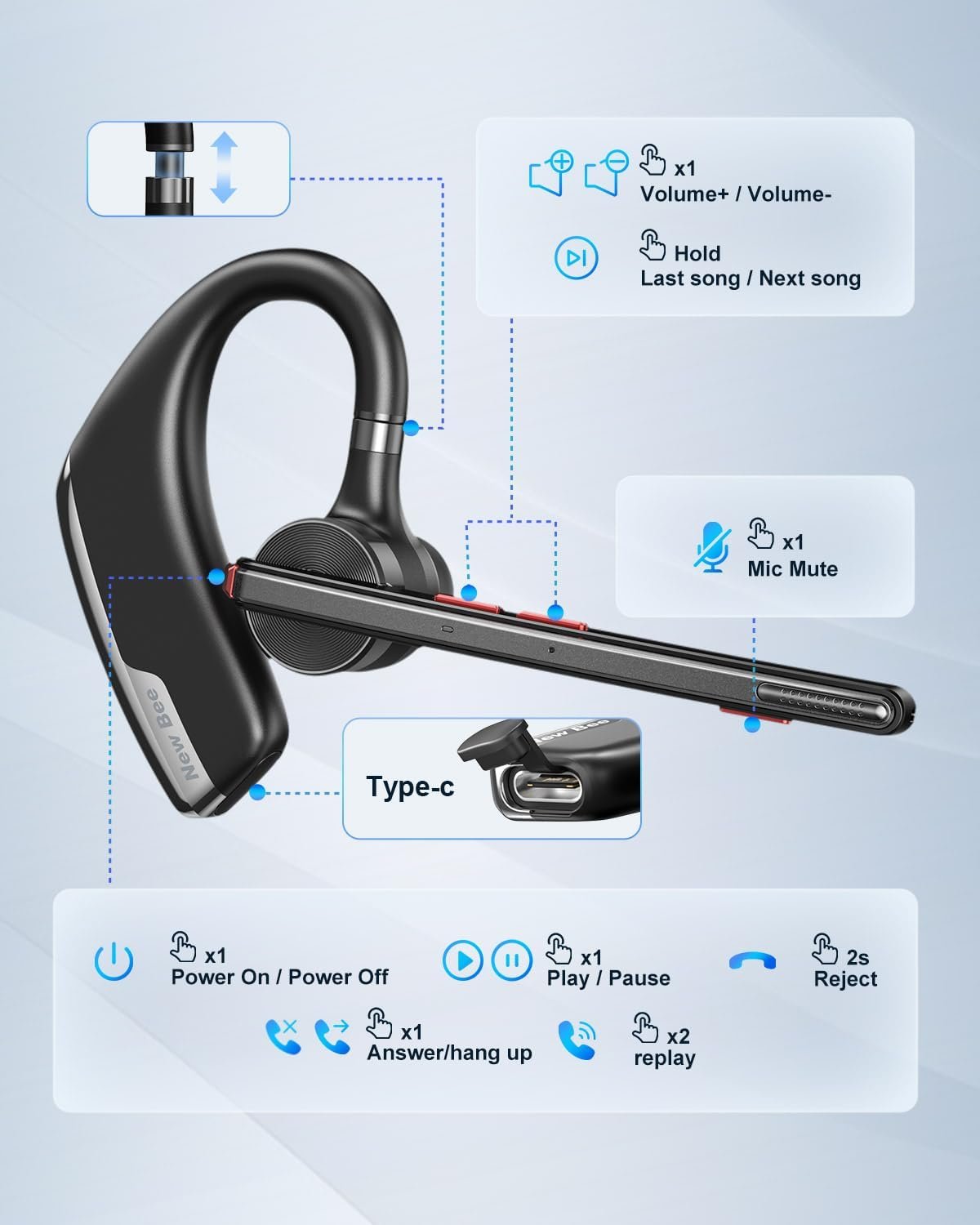 COMFORTABLE AND PRACTICAL – Based on ergonomics, designed to fit any ear, the retractable hook and Flip-boom arm rotate and rotate for a comfortable fit. It is light and comfortable enough to wear for hours. Maximum comfort pads are available in 3 different sizes to provide a snug and custom fit