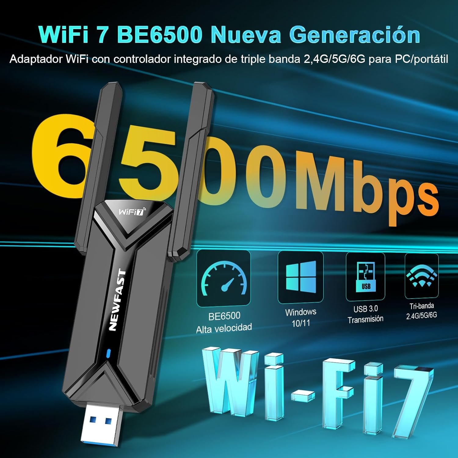 【6500Mbps Ultra Fast Speeds with WiFi 7】 WiFi Adapter Uses WiFi 7 (802.11be) technology, with 320MHz channels and 4096-QAM modulation, to achieve theoretical speeds up to 6.5Gbps. Perfect for 8K streaming, large file transfers, and bandwidth-intensive tasks.