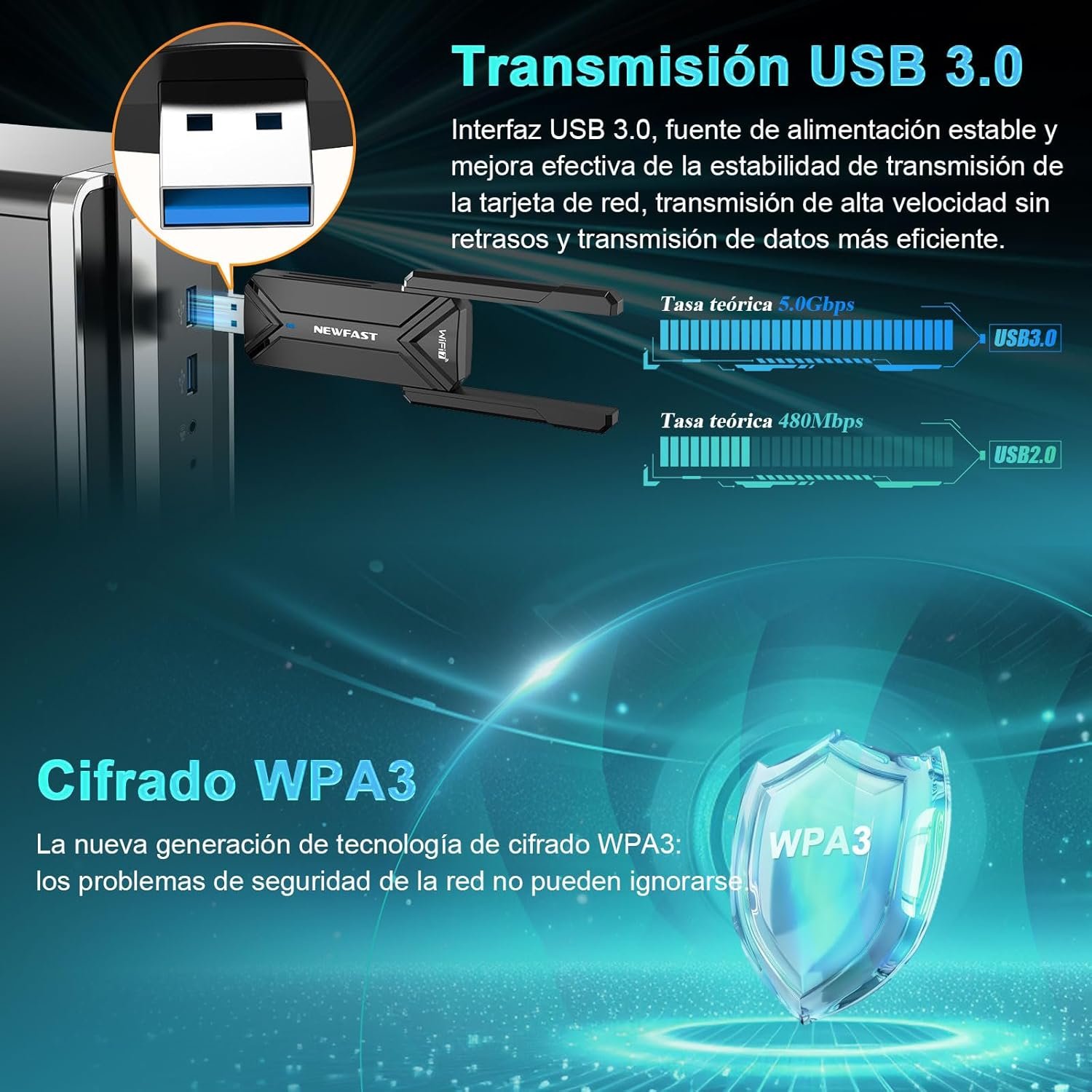 【WPA3 encryption】USB WiFi receiver, offers WPA3 encryption for robust protection against cyber threats, ensuring the security of sensitive data on current networks.