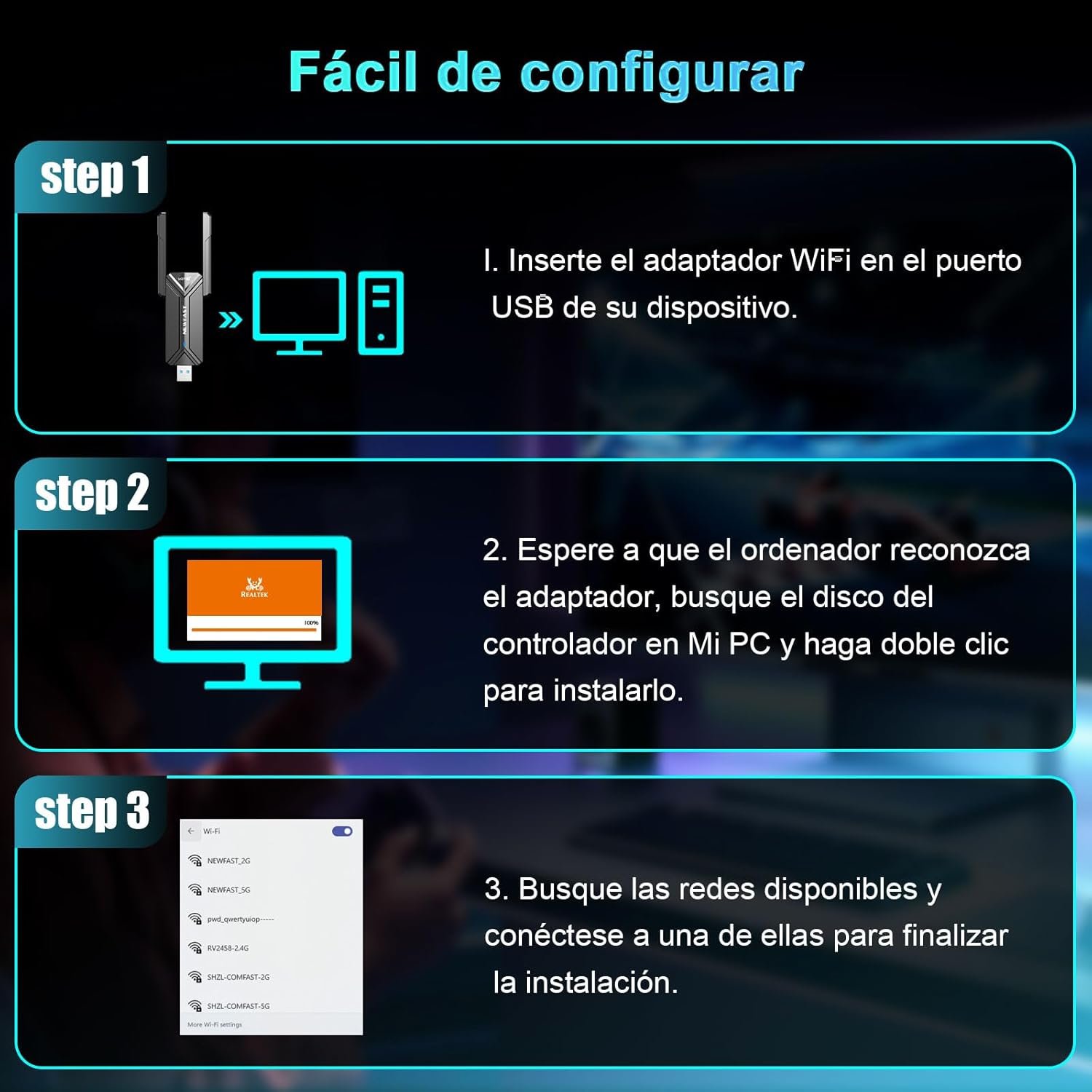 【USB 3.0 & 5dBi High Gain Antenna】 USB WiFi antenna for PC, USB 3.0 design allows for simple installation without the need for internal hardware upgrades. It is portable and compatible with laptops, desktops and other systems, providing flexibility and hassle-free setup.